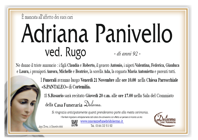 I familiari ringraziano anticipatamente tutti coloro che parteciperanno alla cerimonia funebre