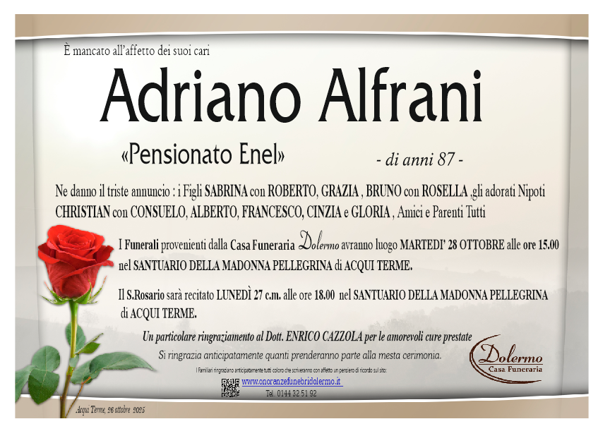 I familiari ringraziano anticipatamente tutti coloro che parteciperanno alla cerimonia funebre