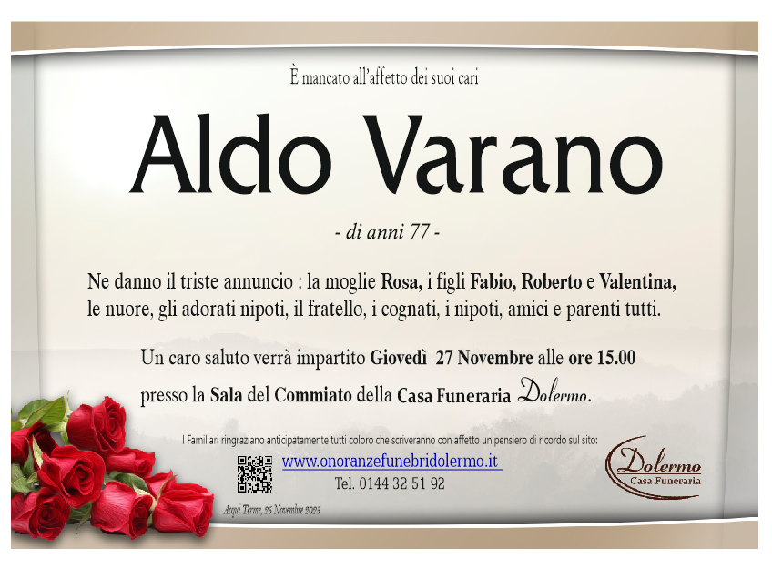I familiari ringraziano anticipatamente tutti coloro che parteciperanno alla cerimonia funebre