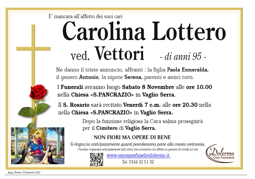 I familiari ringraziano anticipatamente tutti coloro che parteciperanno alla cerimonia funebre