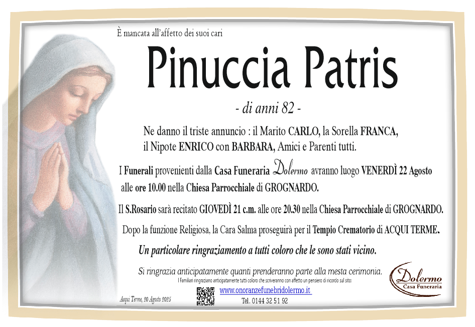 I familiari ringraziano anticipatamente tutti coloro che parteciperanno alla cerimonia funebre