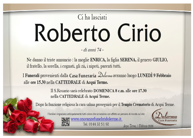 I familiari ringraziano anticipatamente tutti coloro che parteciperanno alla cerimonia funebre