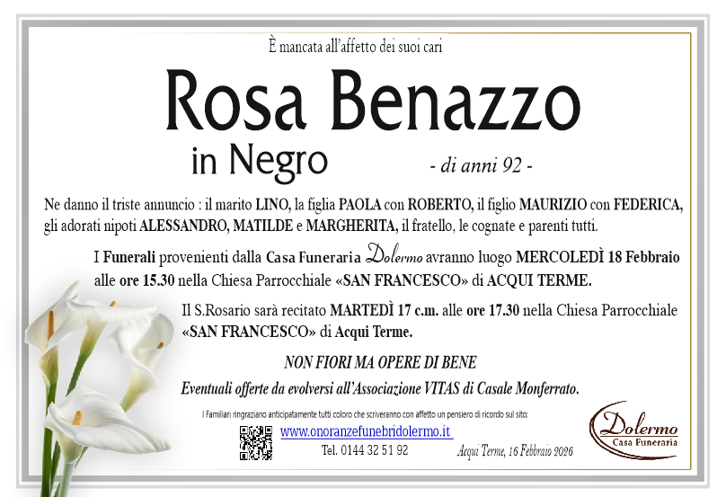 I familiari ringraziano anticipatamente tutti coloro che parteciperanno alla cerimonia funebre