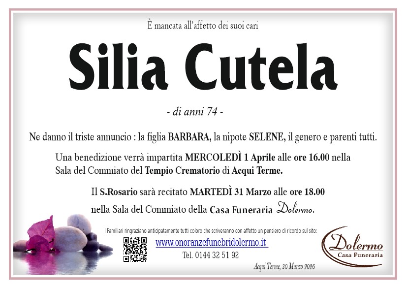 “Cara Silia, solo oggi ho scoperto che eri proprio tu quella cara amica che ricordavo con affetto. Il cuore si stringe, ma resta la gratitudine per la tua gentilezza e il tuo sorriso. A Barbara e alla tua famiglia la mia più sincera vicinanza. Che tu possa riposare nella luce e nella pace.” Sentite Condoglianze a te e a tuo marito!Barbara e Salvo