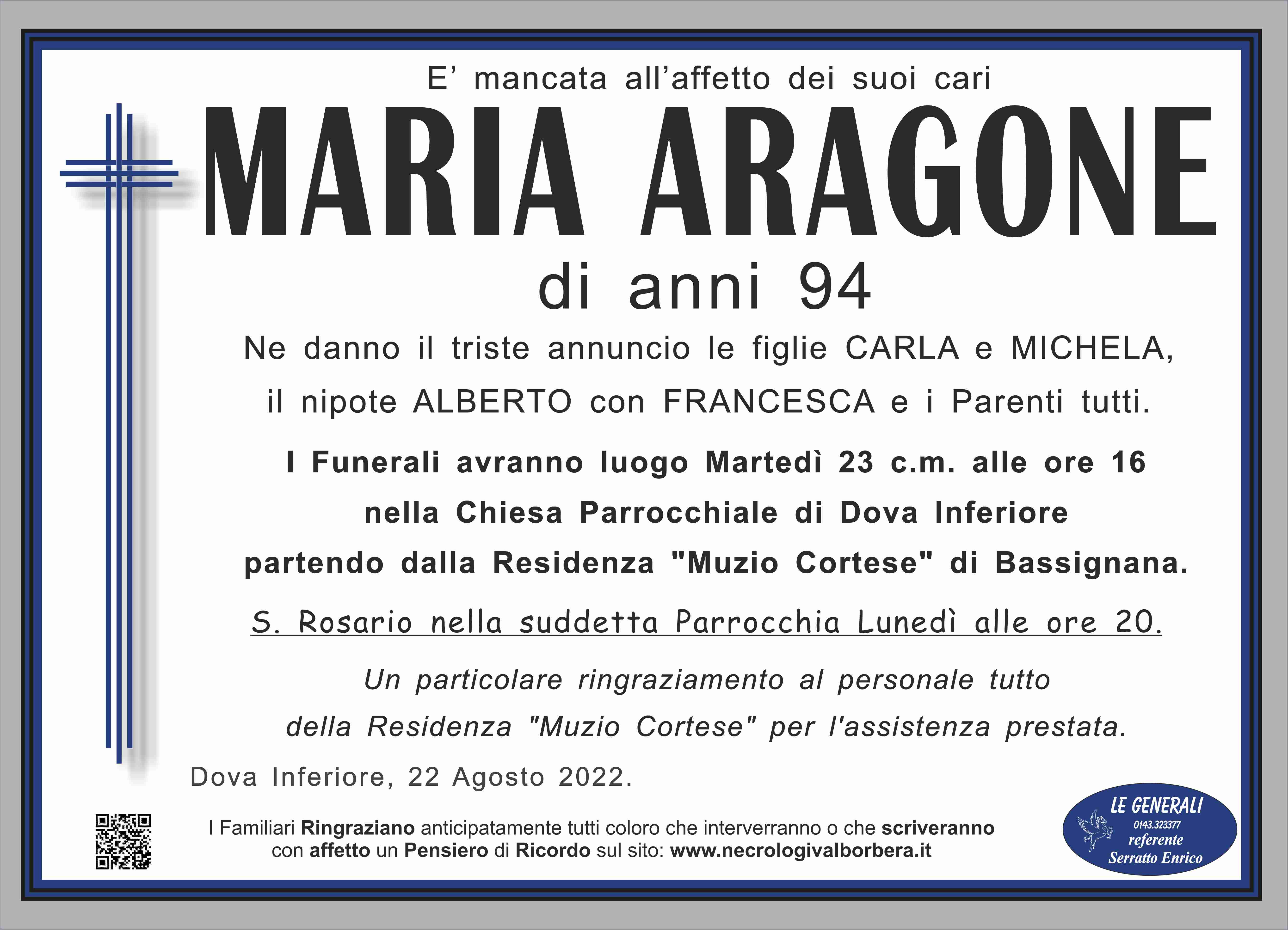 Clicca il pulsante qui sotto per visualizzare sulla mappa il luogo dove riposa Maria Aragone.