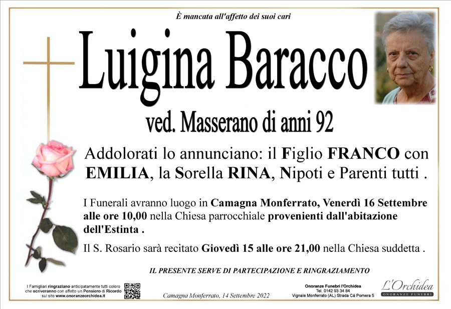 <p style="text-align:center">I familiari <strong>ringraziano</strong> anticipatamente tutti coloro che <strong>parteciperanno</strong> alla cerimonia funebre<br /> e tutti coloro che <strong>scriveranno</strong> con <strong>affetto</strong> un <strong>Pensiero di Ricordo</strong>.</p>