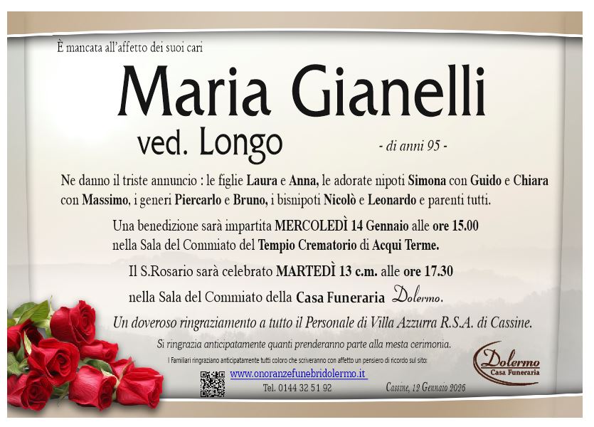 I familiari ringraziano anticipatamente tutti coloro che parteciperanno alla cerimonia funebre