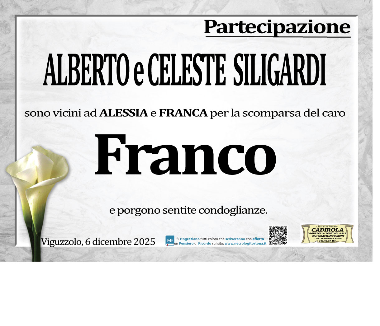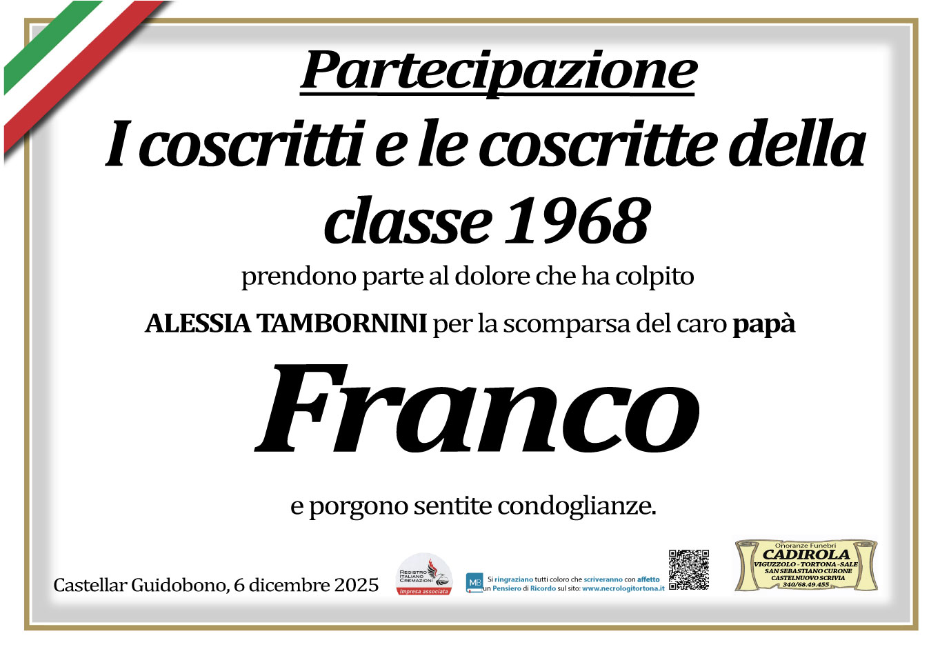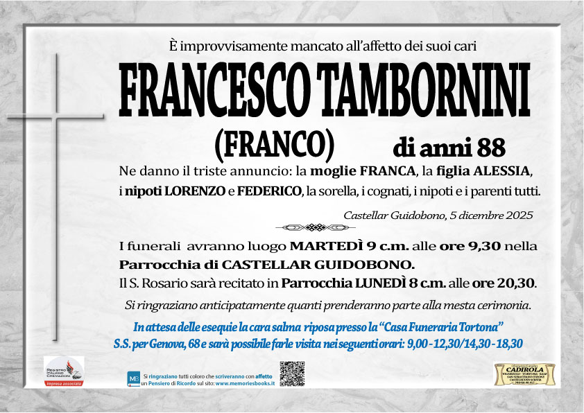 I familiari ringraziano anticipatamente tutti coloro che parteciperanno alla cerimonia funebre
