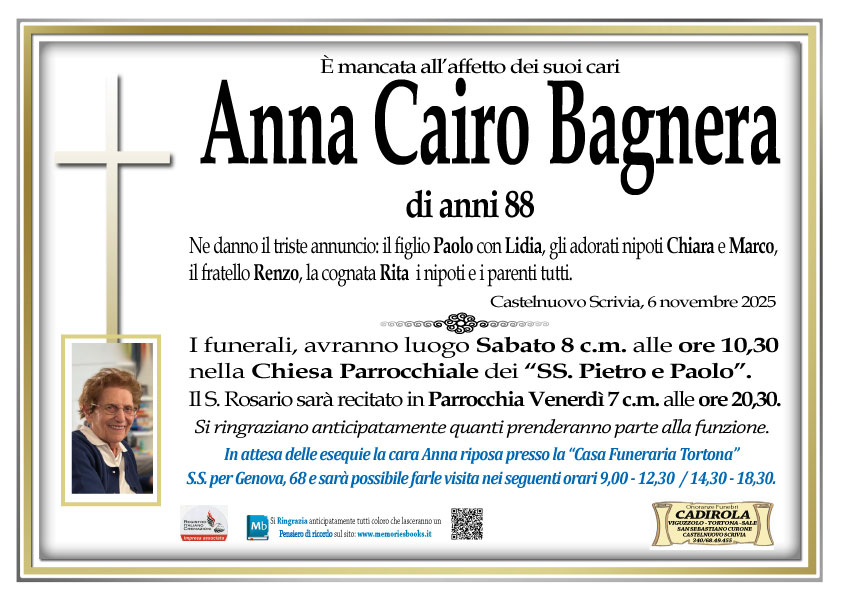 I familiari ringraziano anticipatamente tutti coloro che parteciperanno alla cerimonia funebre
