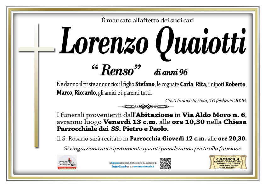 Clicca il pulsante qui sotto per visualizzare sulla mappa il luogo dove riposa LORENZO QUAIOTTI.