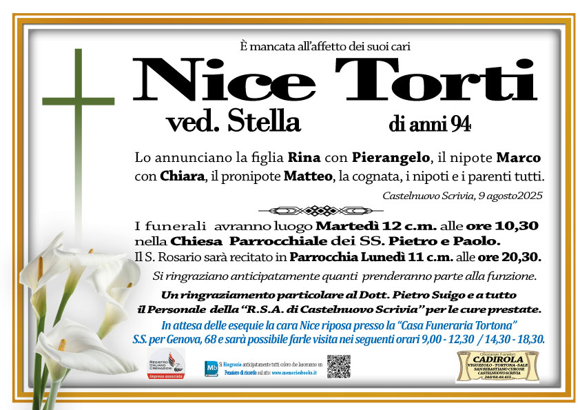 I familiari ringraziano anticipatamente tutti coloro che parteciperanno alla cerimonia funebre