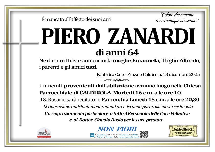 Ho saputo poco fa la triste notizia della perdita del caro "Piero". Condoglianze alla famiglia. Daniela Rodrigo