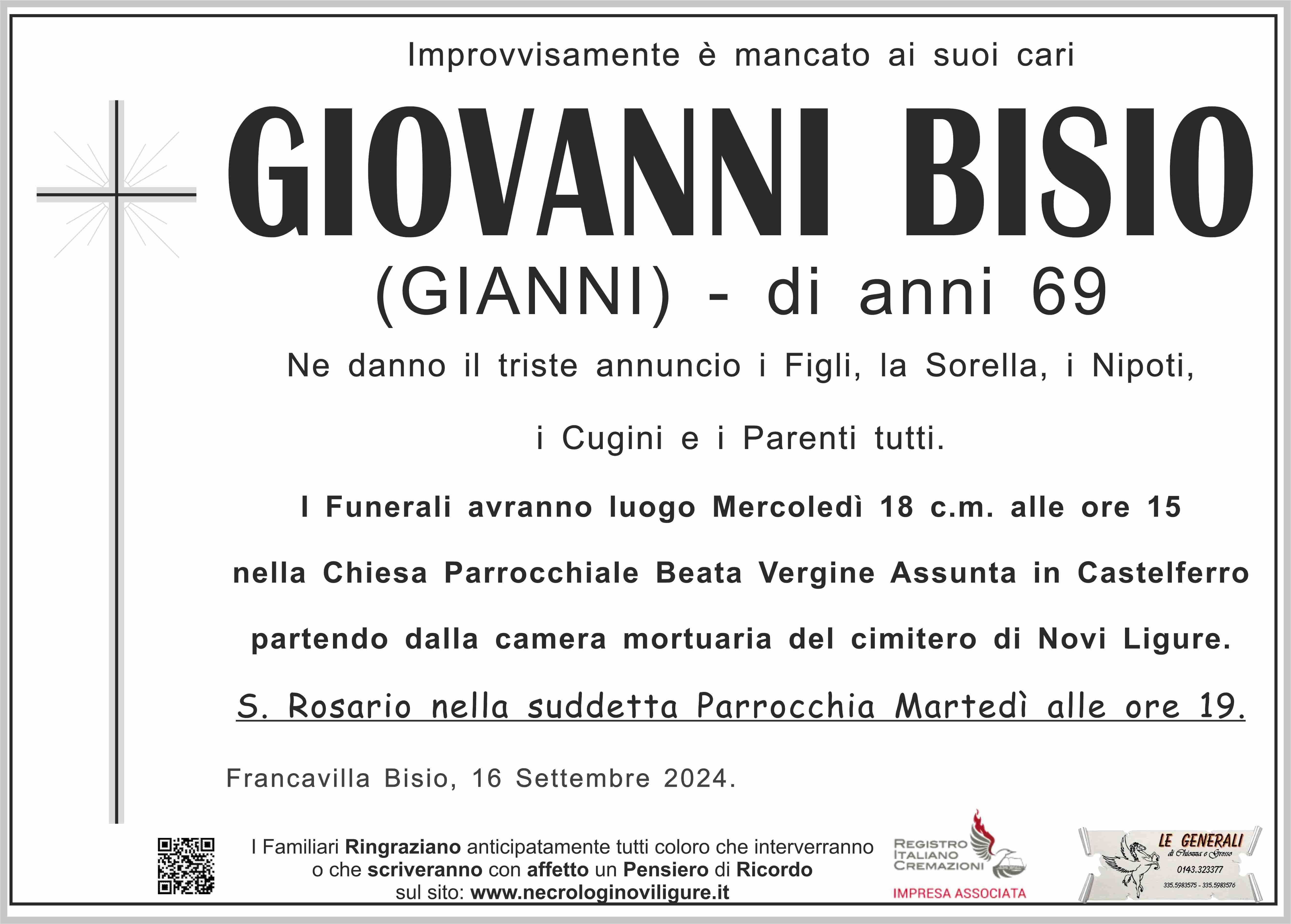 I familiari ringraziano anticipatamente tutti coloro che parteciperanno alla cerimonia funebre