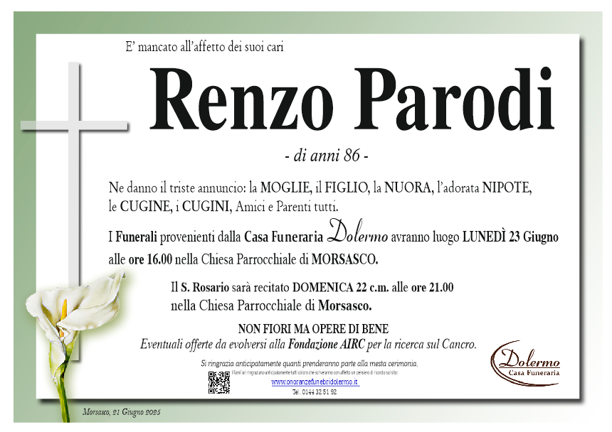 I familiari ringraziano anticipatamente tutti coloro che parteciperanno alla cerimonia funebre