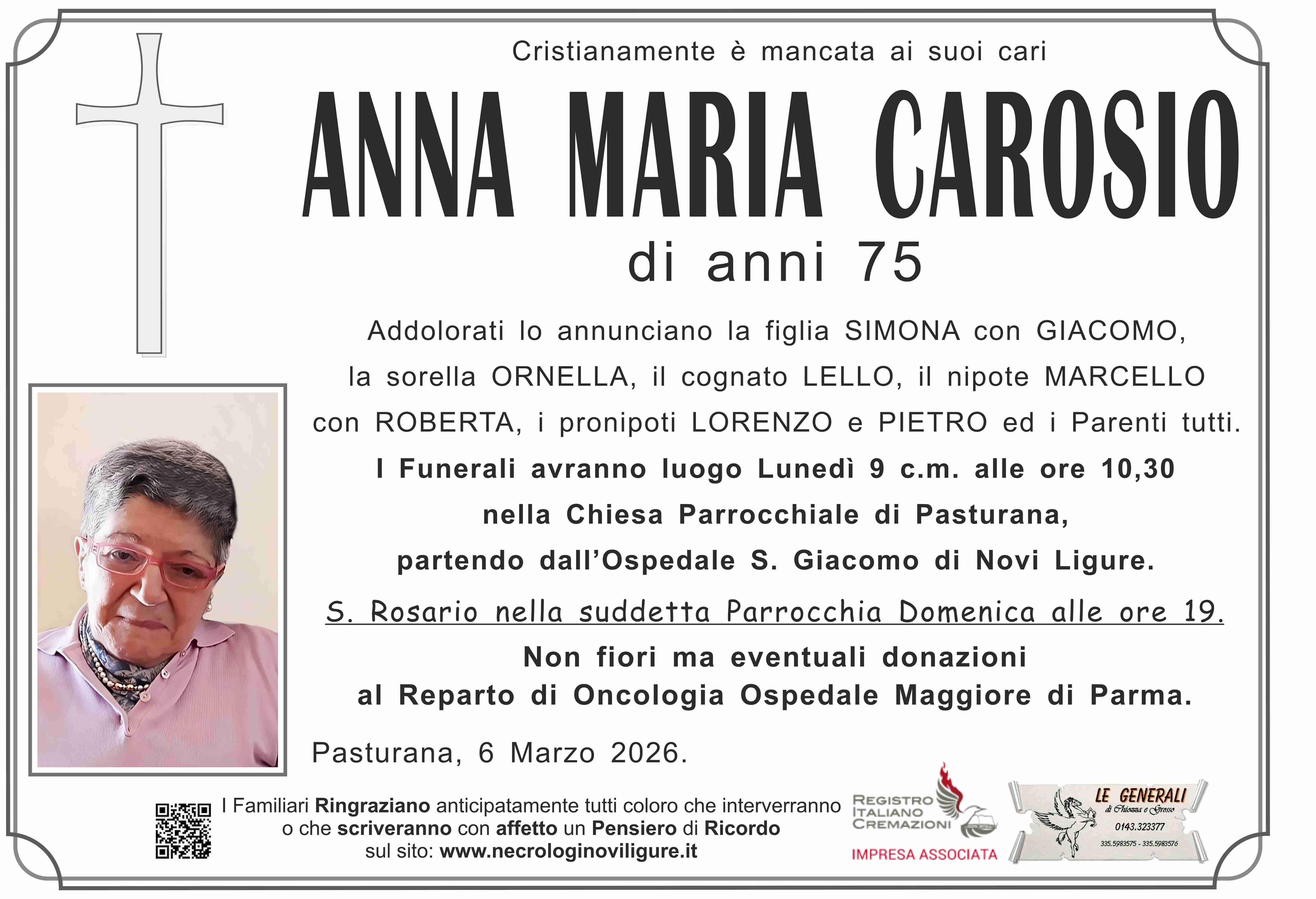 I familiari ringraziano anticipatamente tutti coloro che parteciperanno alla cerimonia funebre