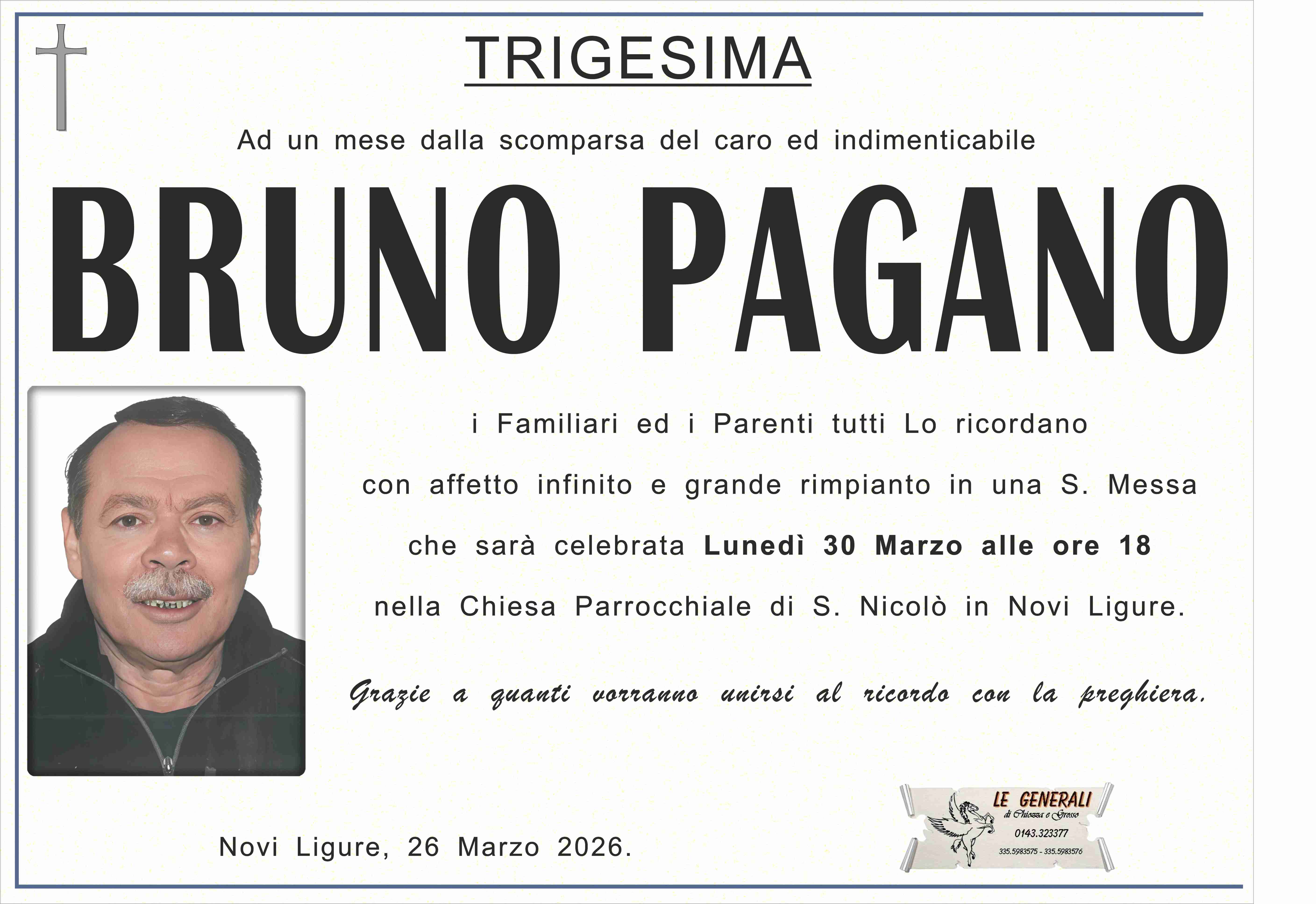 I familiari ringraziano anticipatamente tutti coloro che parteciperanno alla cerimonia funebre