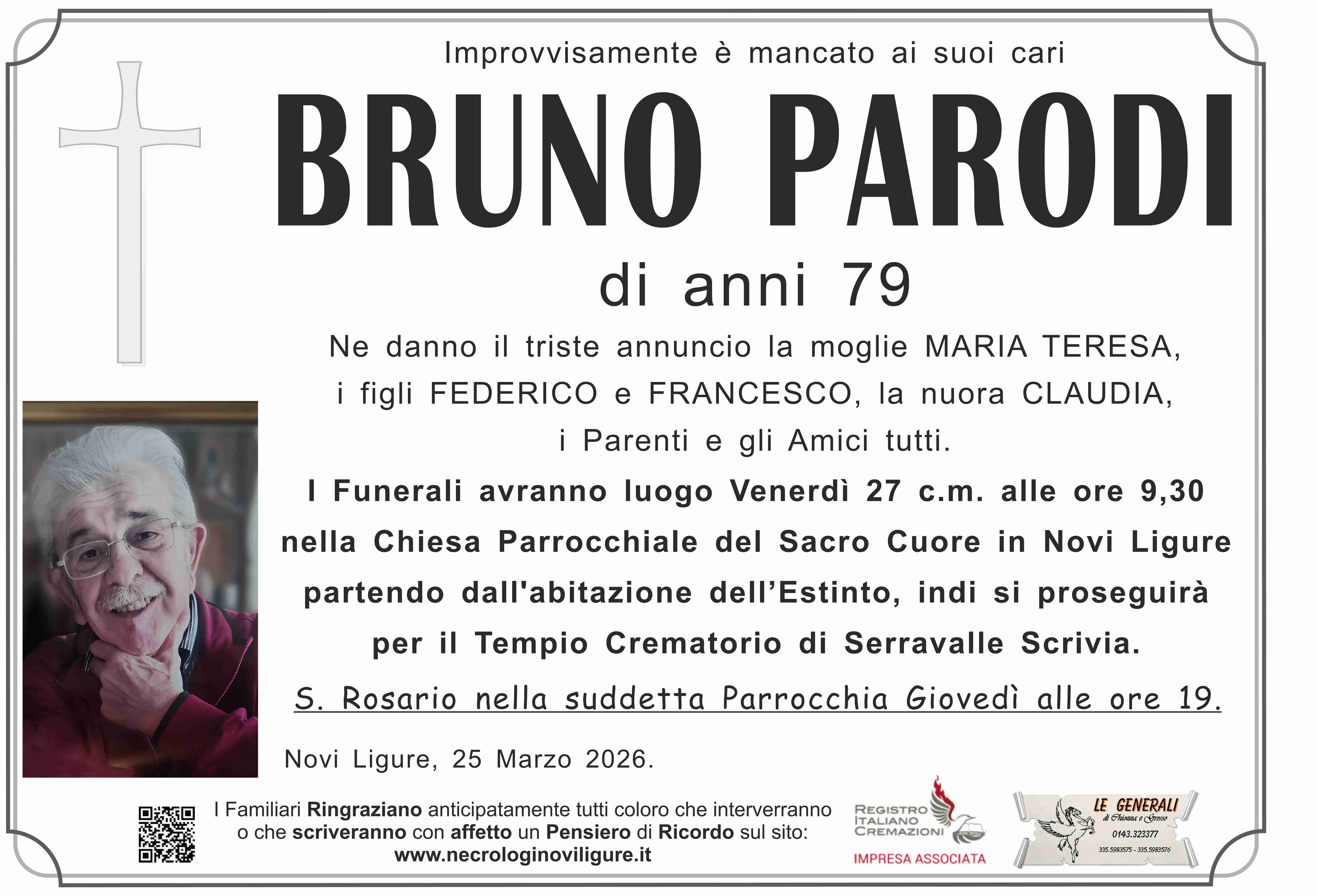 I familiari ringraziano anticipatamente tutti coloro che parteciperanno alla cerimonia funebre