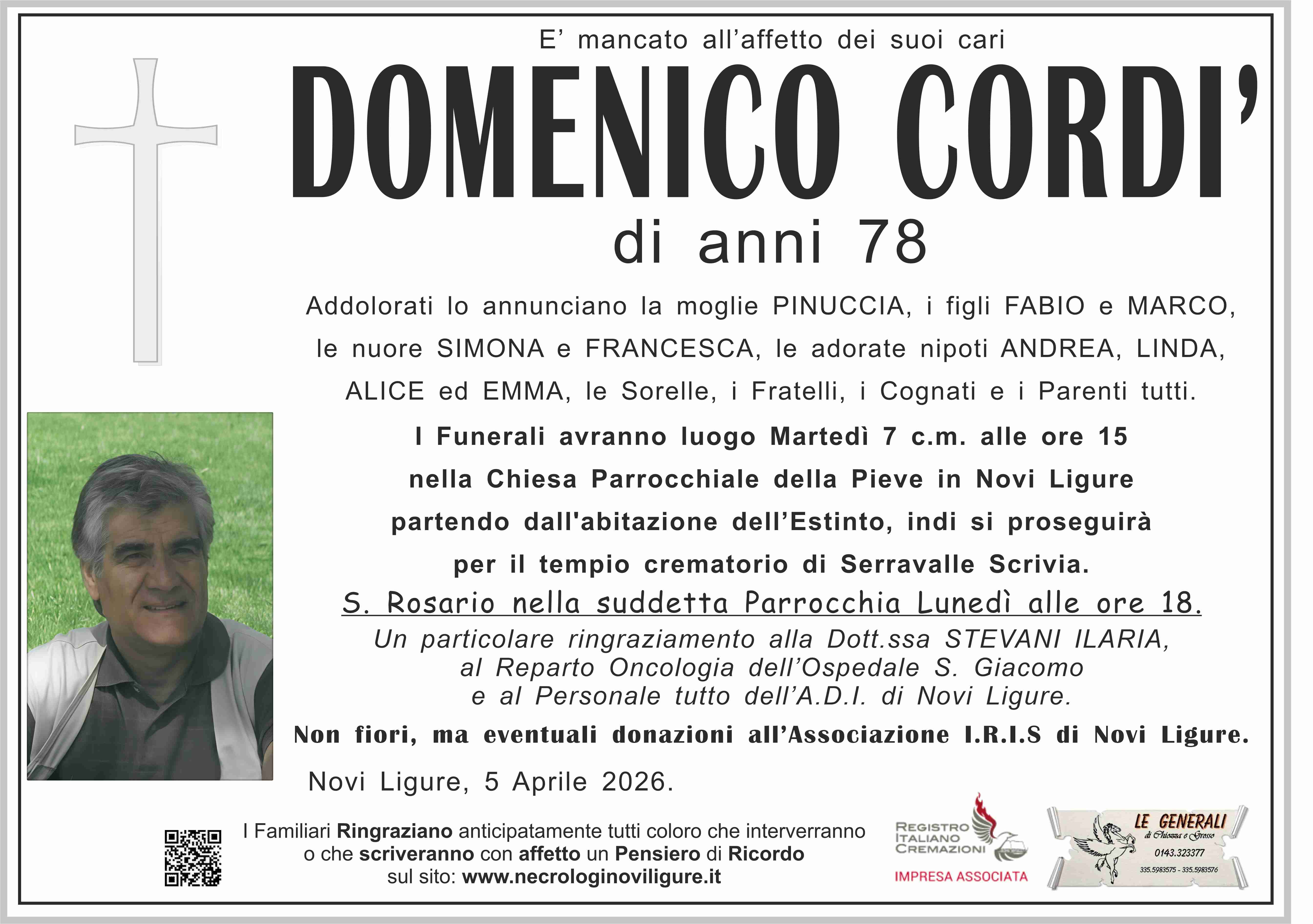 I familiari ringraziano anticipatamente tutti coloro che parteciperanno alla cerimonia funebre