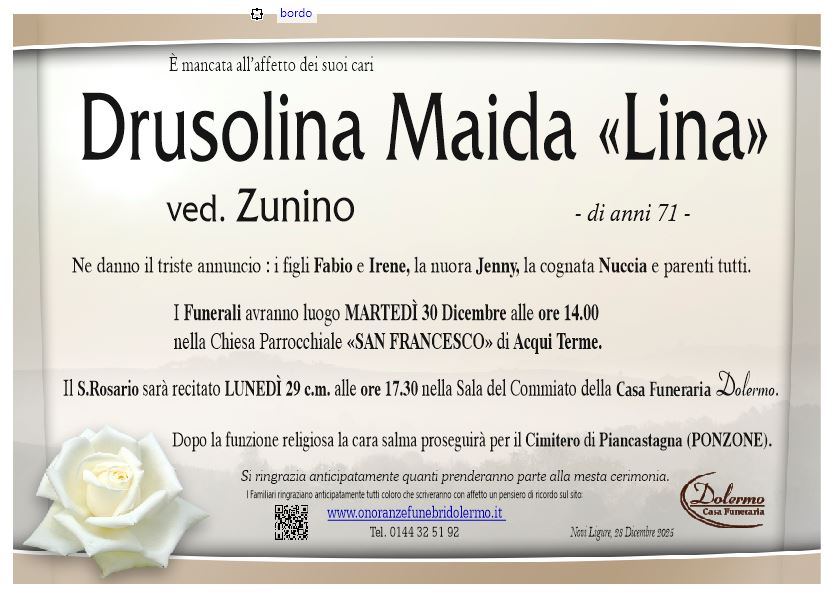 I familiari ringraziano anticipatamente tutti coloro che parteciperanno alla cerimonia funebre