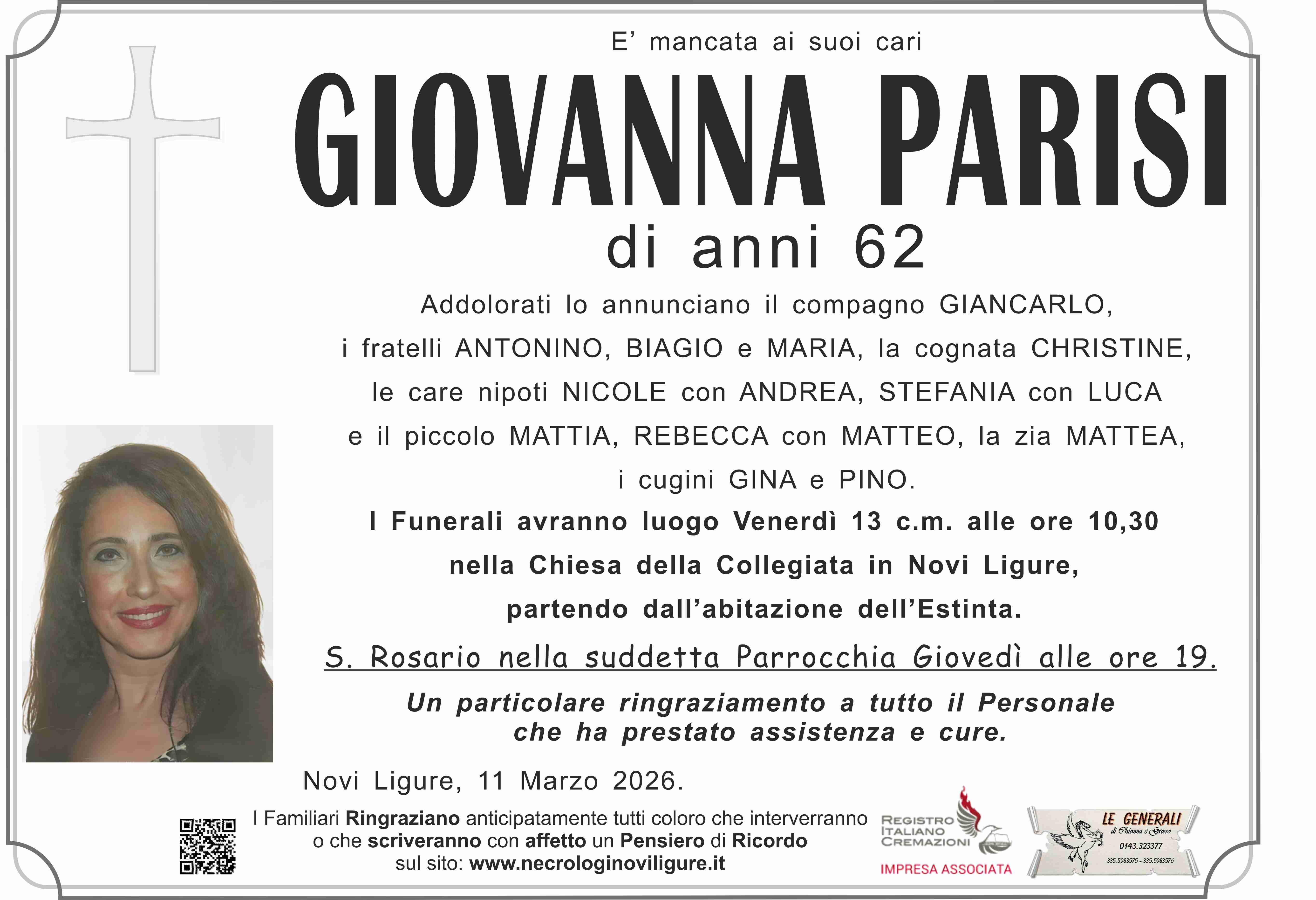 I familiari ringraziano anticipatamente tutti coloro che parteciperanno alla cerimonia funebre