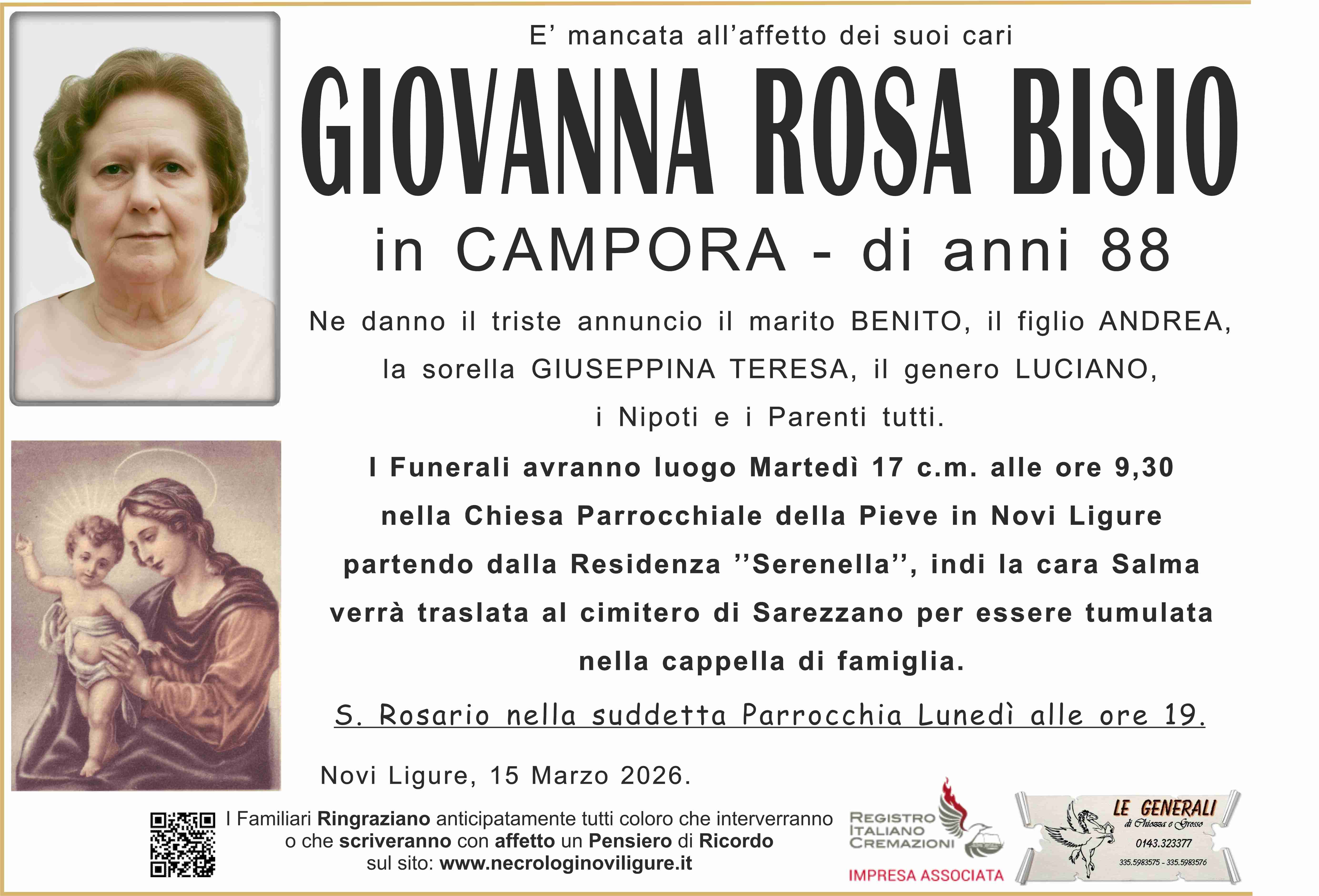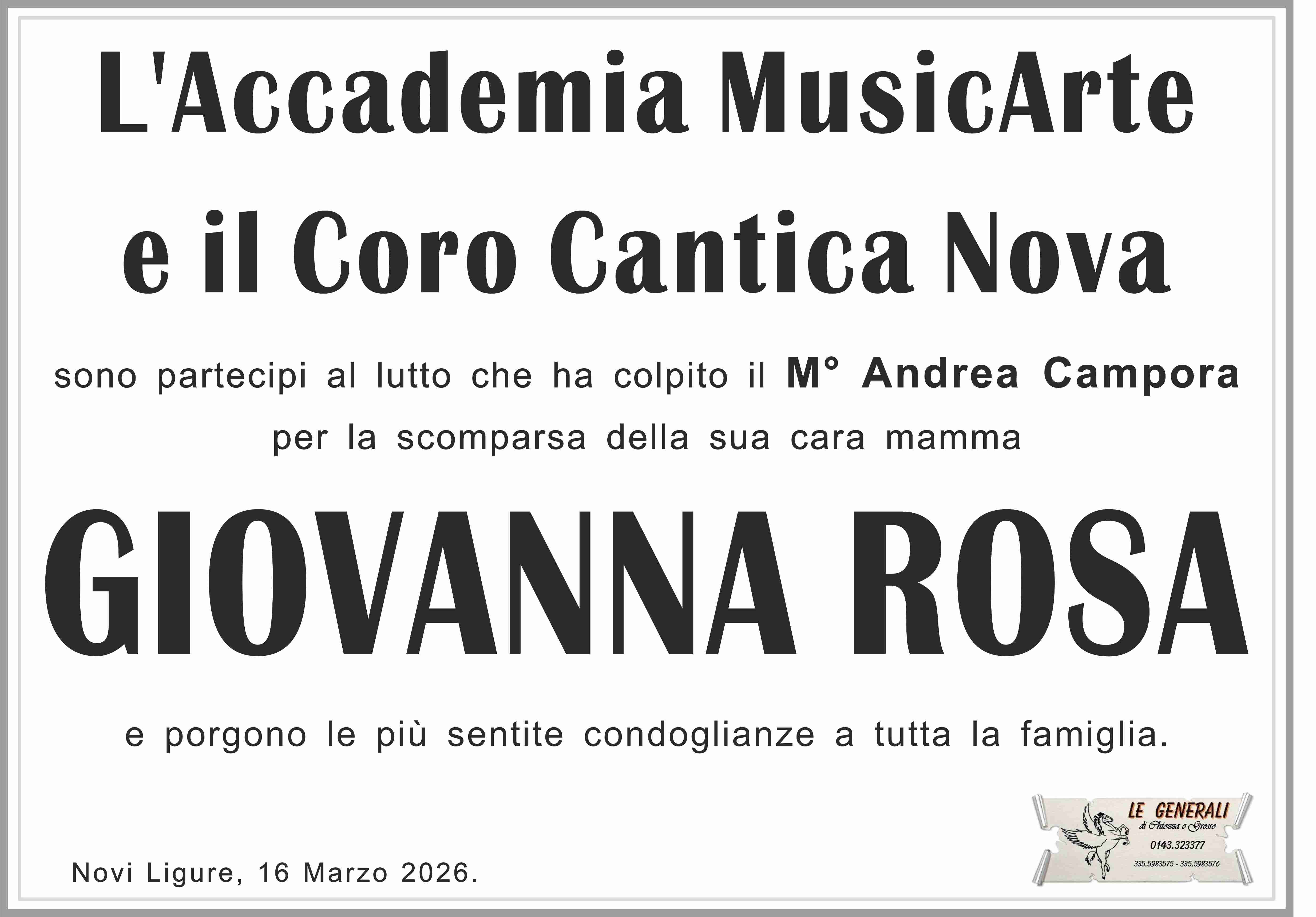 I familiari ringraziano anticipatamente tutti coloro che parteciperanno alla cerimonia funebre