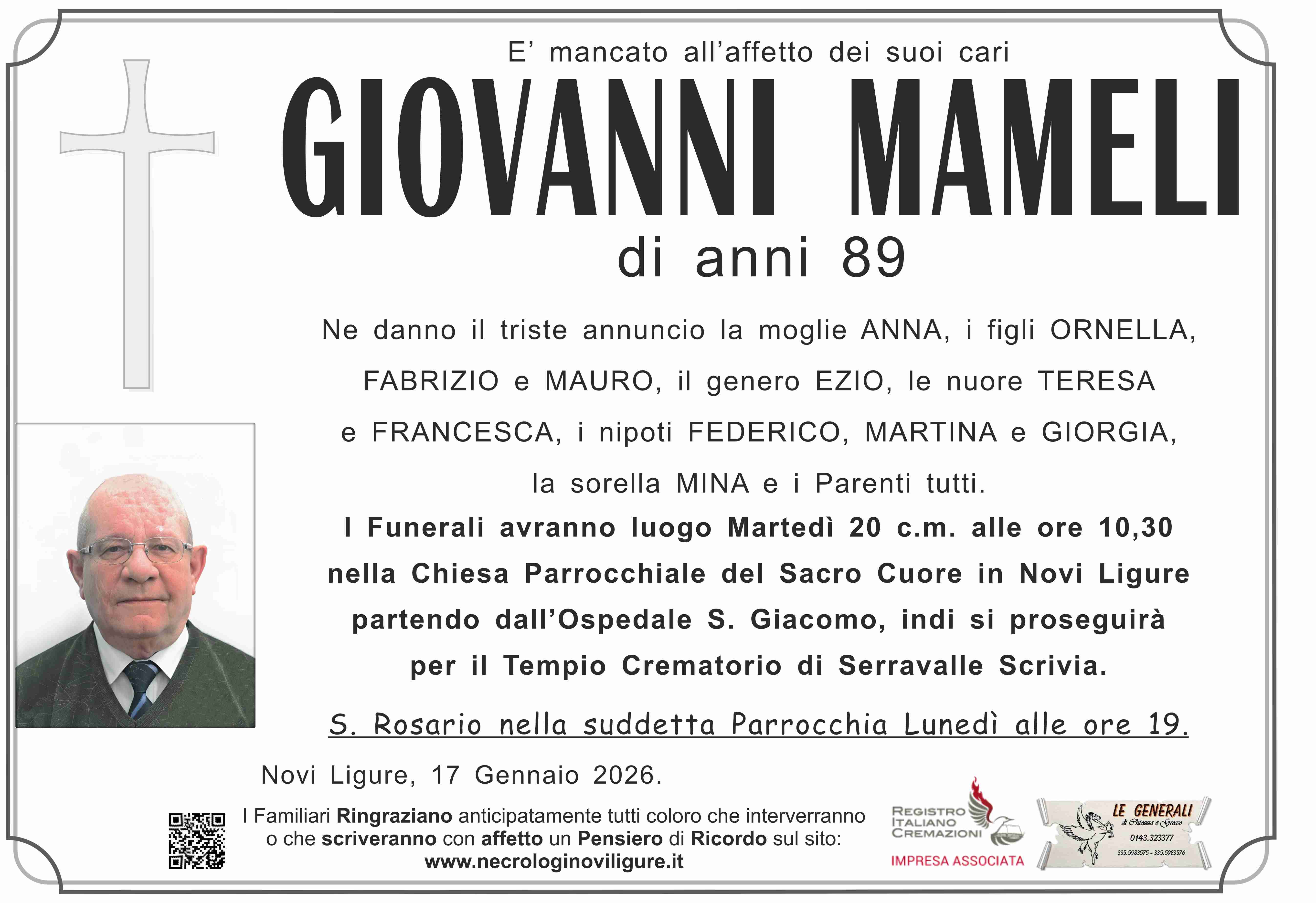 I familiari ringraziano anticipatamente tutti coloro che parteciperanno alla cerimonia funebre