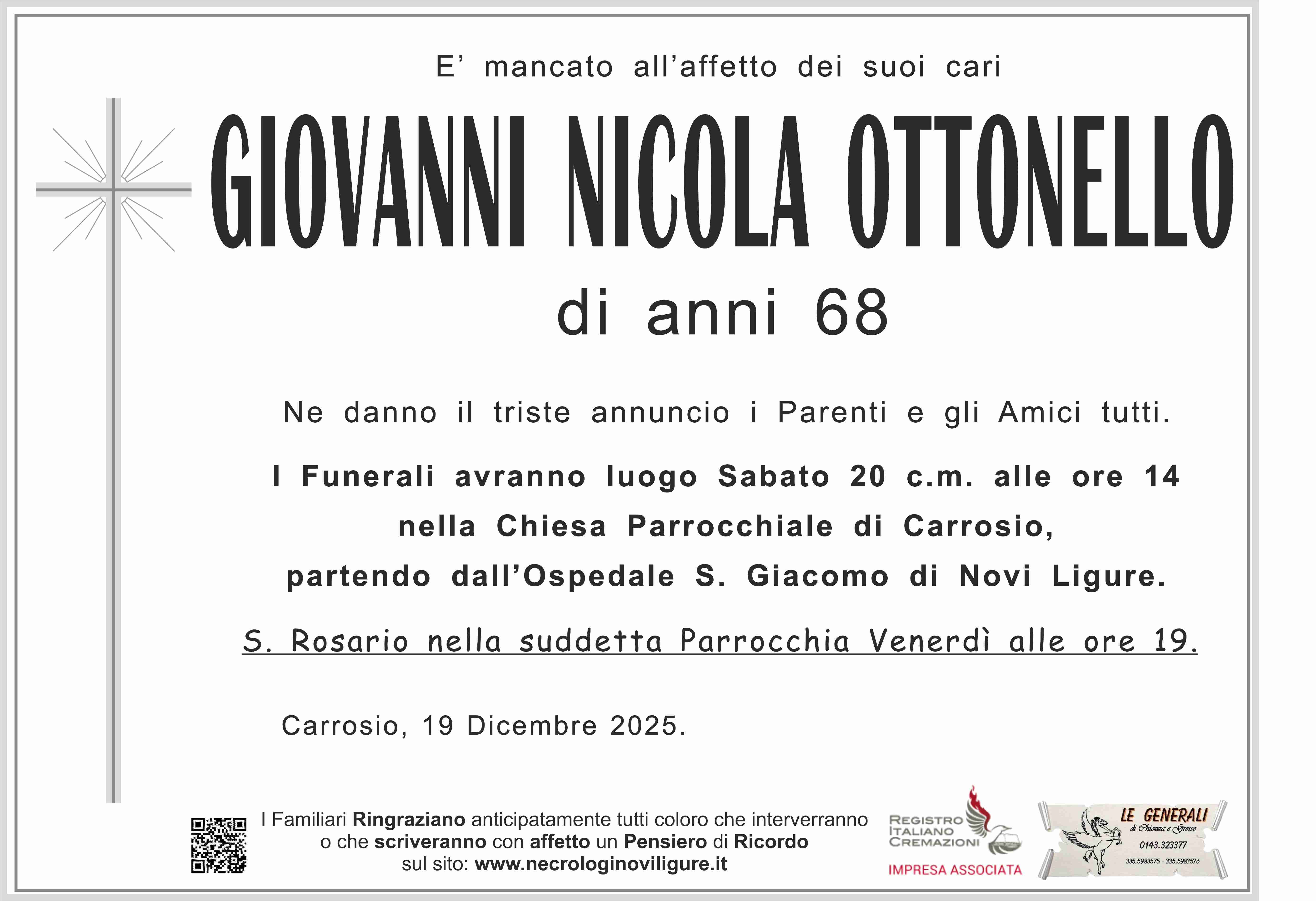 Ciao GianNico Un abbraccio forte una preghiera che la terra sia lieve sono sicuro che sarai nelle braccia di Nostro Signore. ❤️ Tuo cugino Giovanni Ottonello.