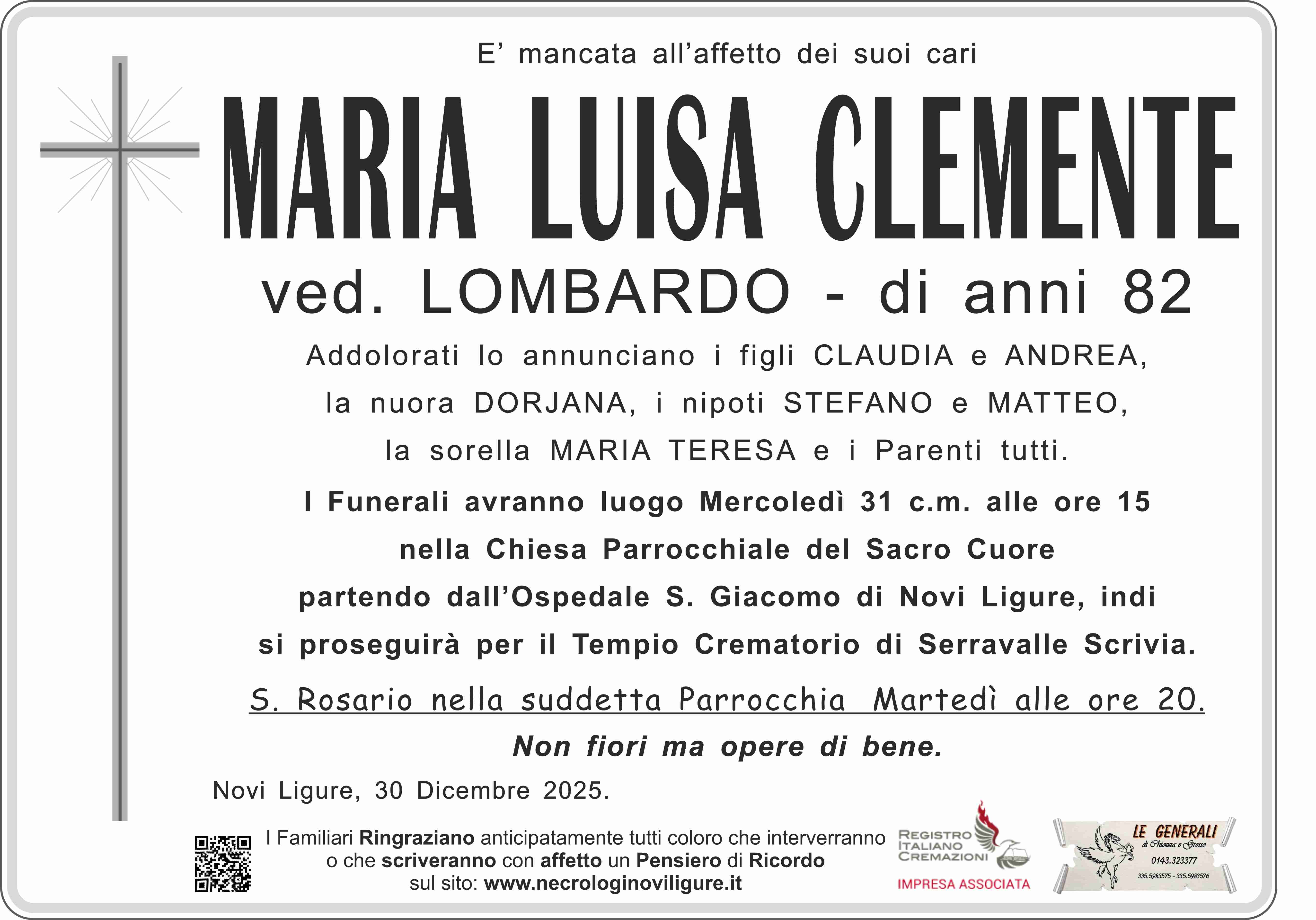 I familiari ringraziano anticipatamente tutti coloro che parteciperanno alla cerimonia funebre