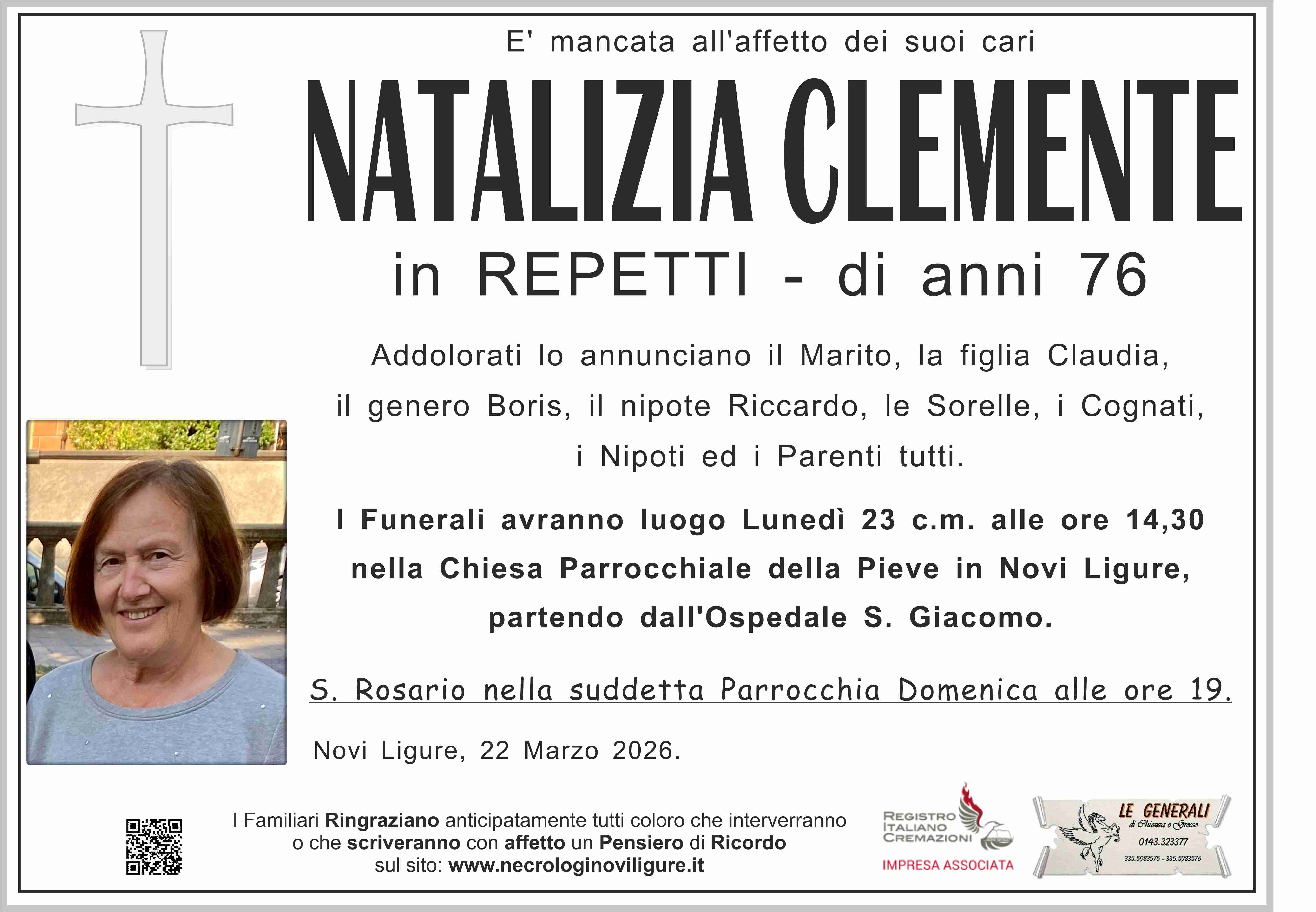 I familiari ringraziano anticipatamente tutti coloro che parteciperanno alla cerimonia funebre