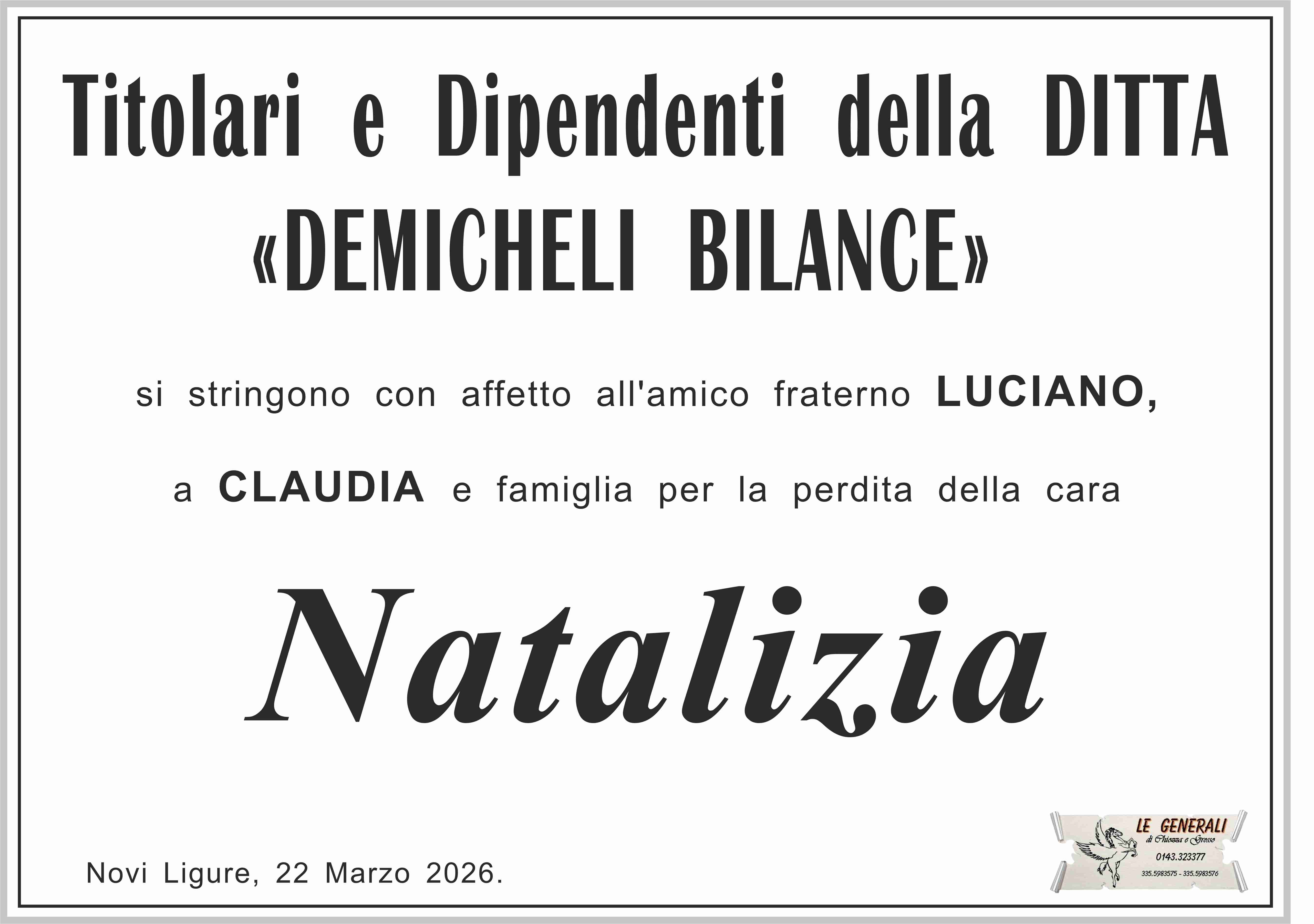 Cari Luciano e Claudia vi siamo vicini e vi abbracciamo,ricordando con affetto la cara Natalizia.