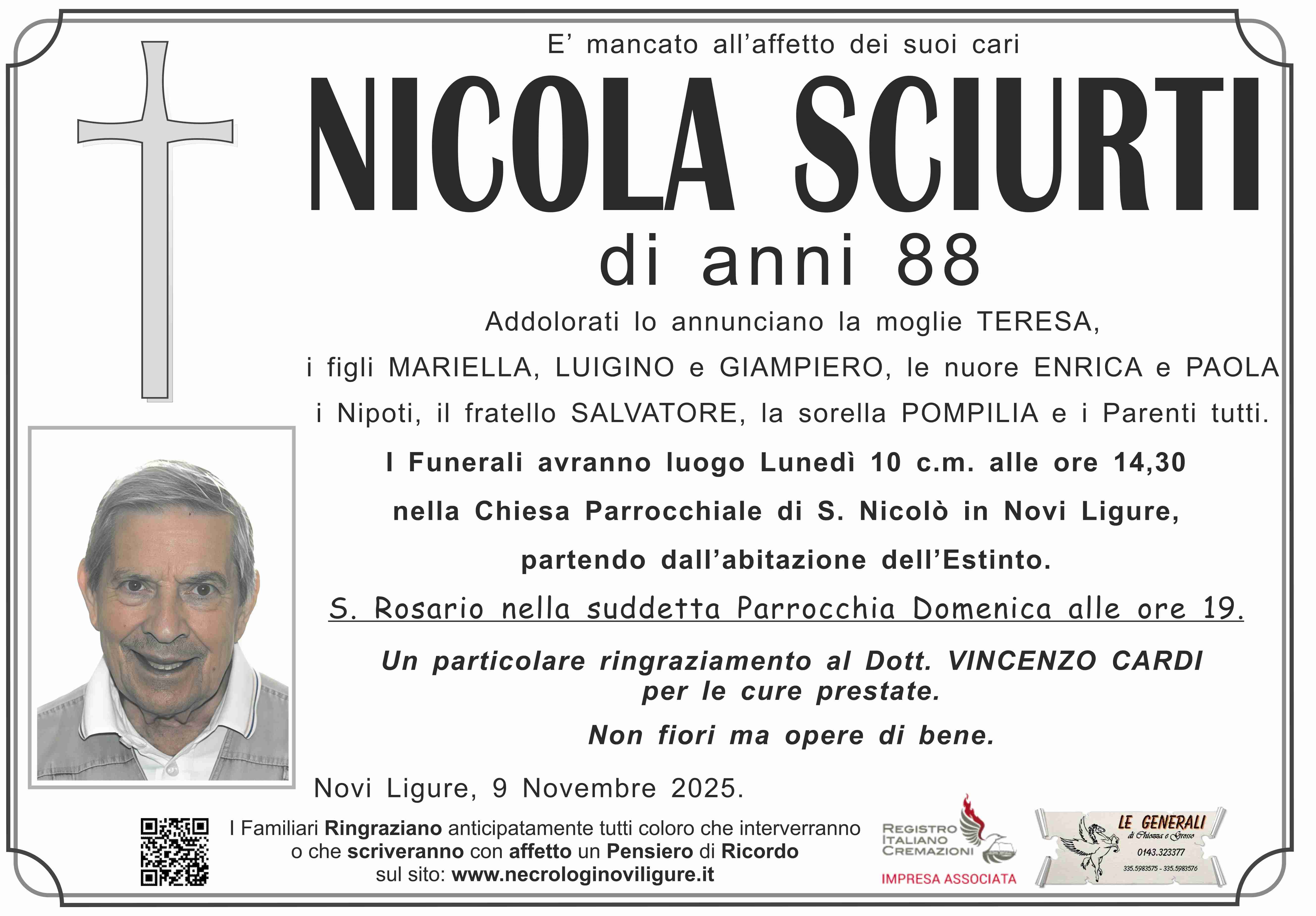 I familiari ringraziano anticipatamente tutti coloro che parteciperanno alla cerimonia funebre