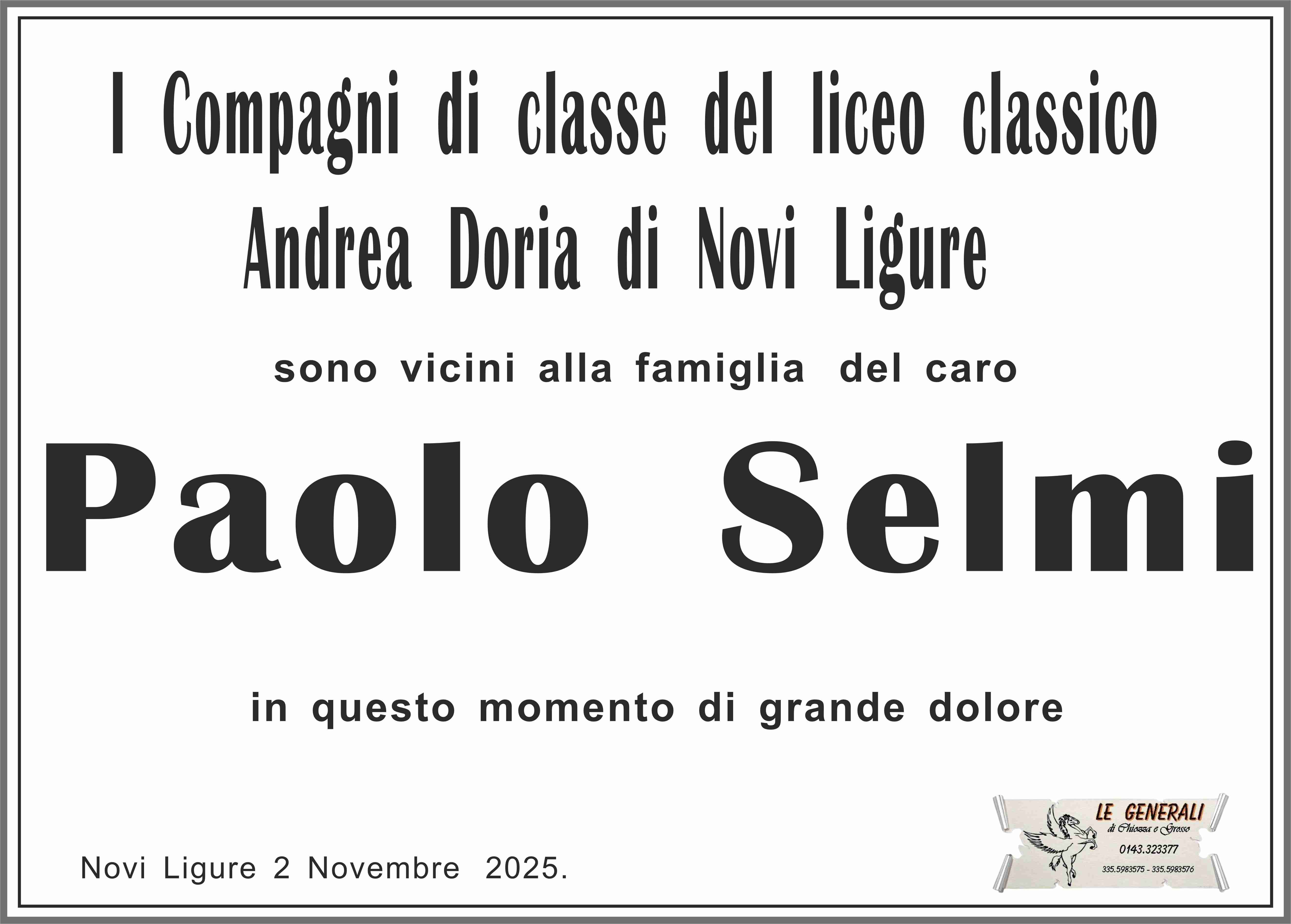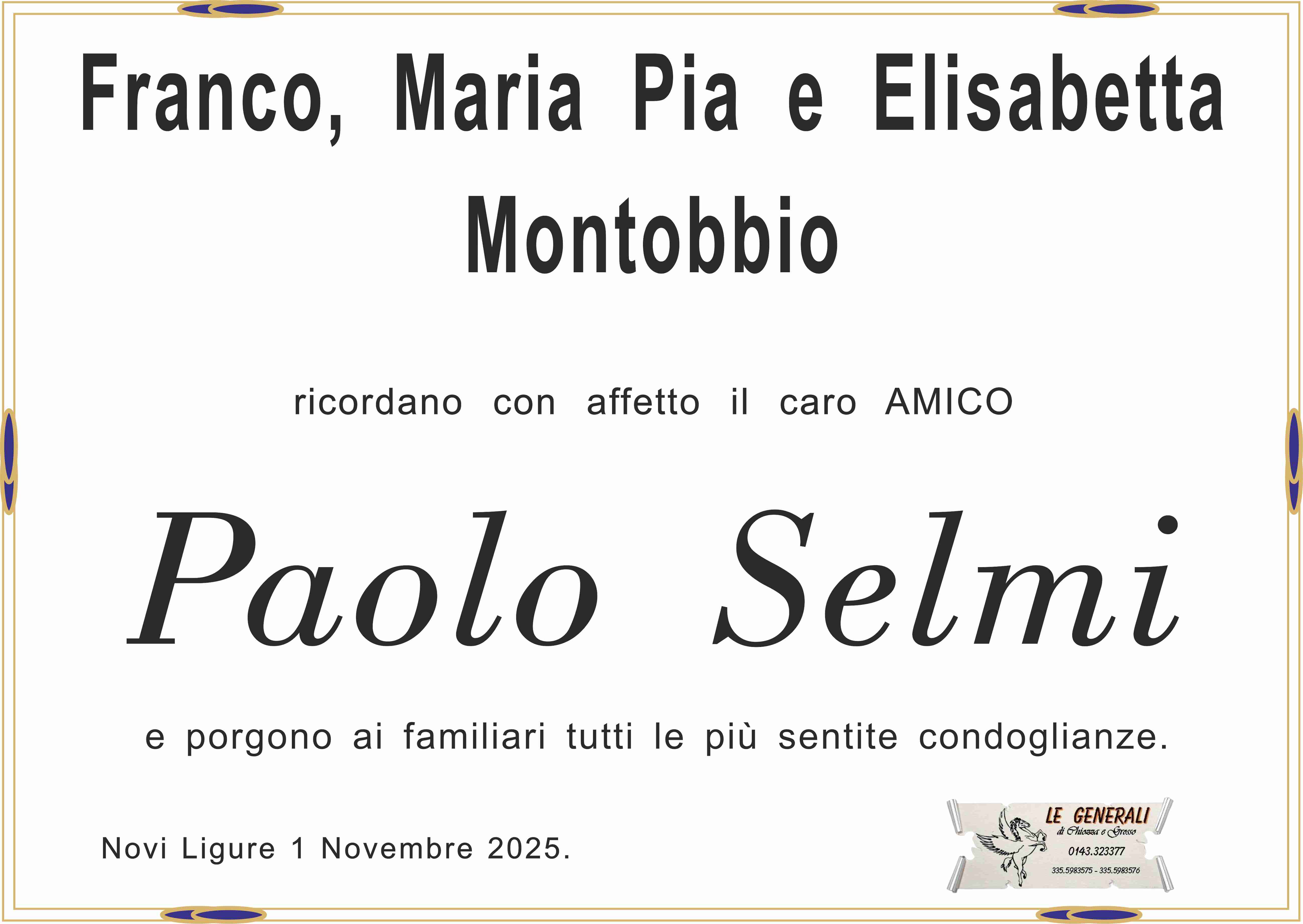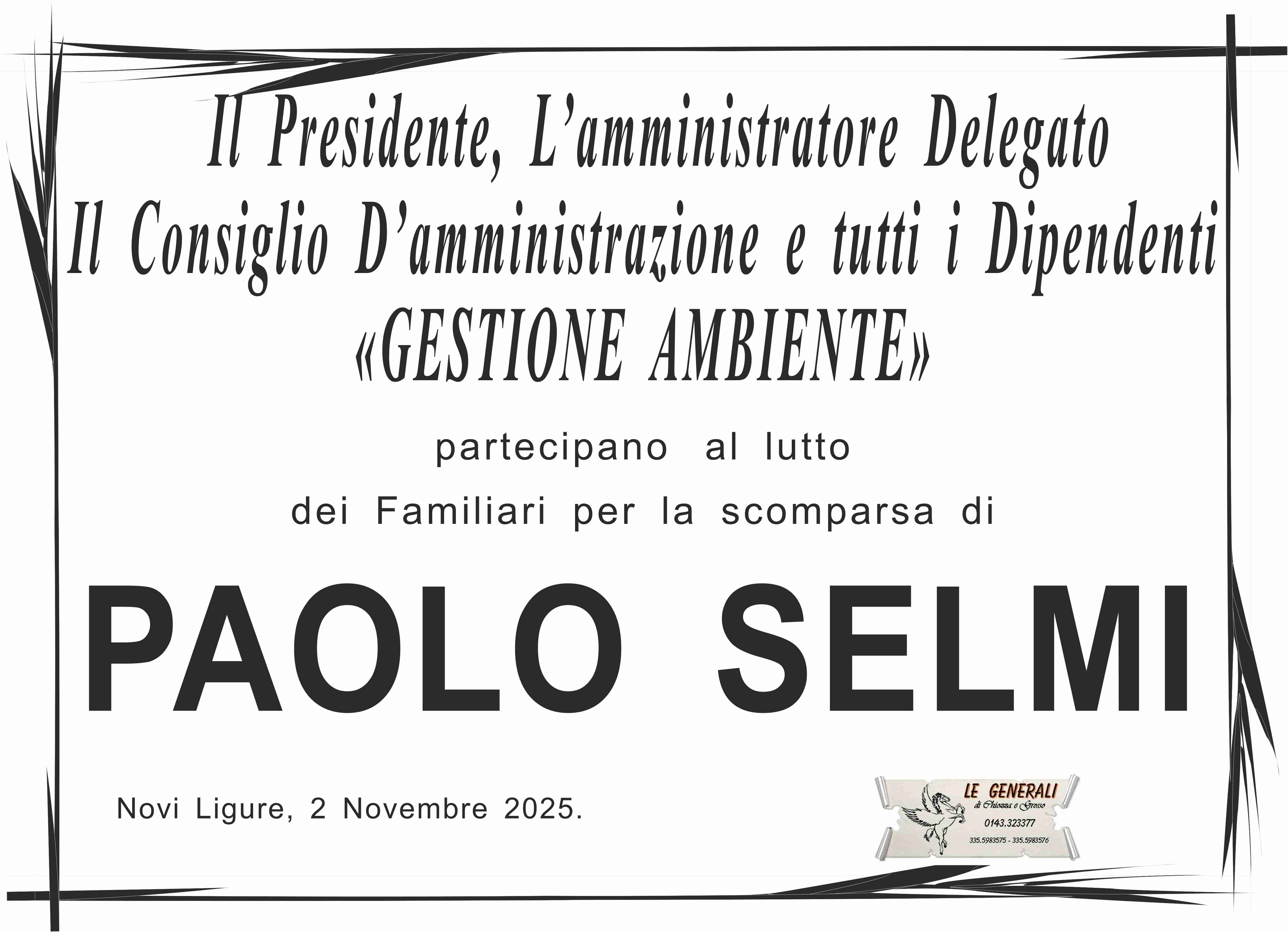 Partecipo al dolore della famiglia per la scomparsa del caro dr paolo Selmi che ricordo con stima essendo stato un mio dirigente. Rip in pace