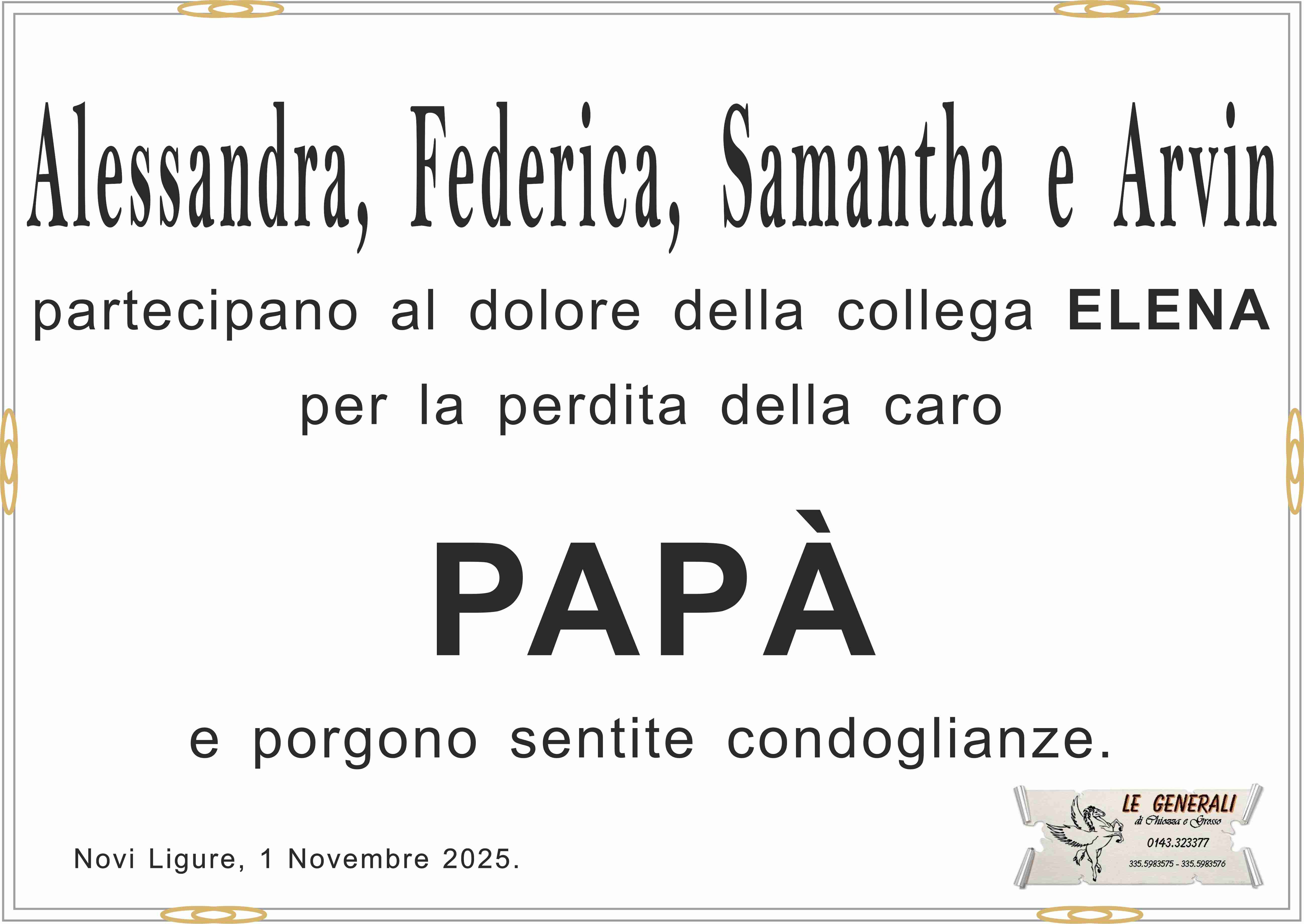 Sentite condoglianze a Elena e famiglia con un grande abbraccio.