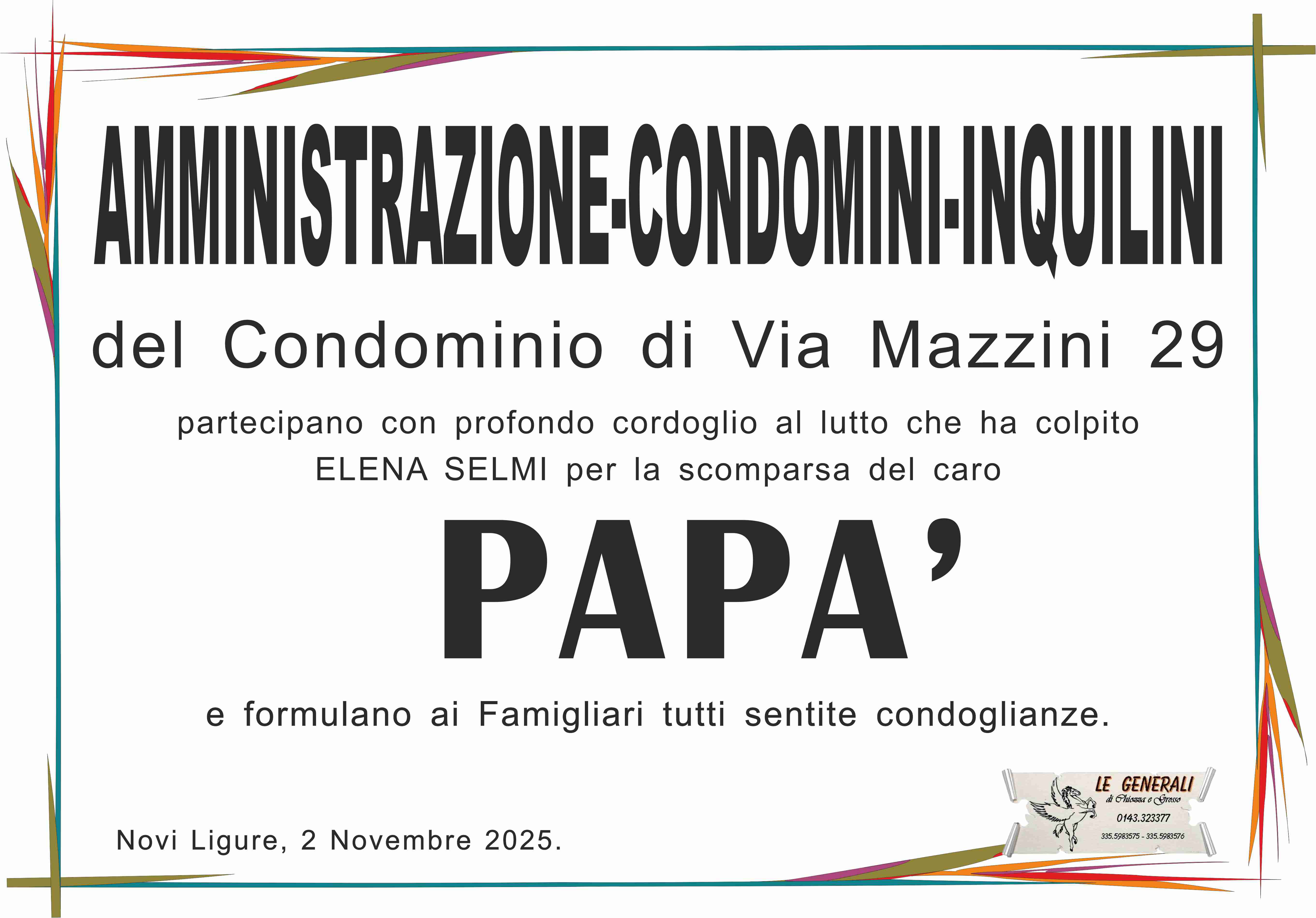 Lo Studio Cuneo porge alla famiglia Selmi le più sentite condoglianze