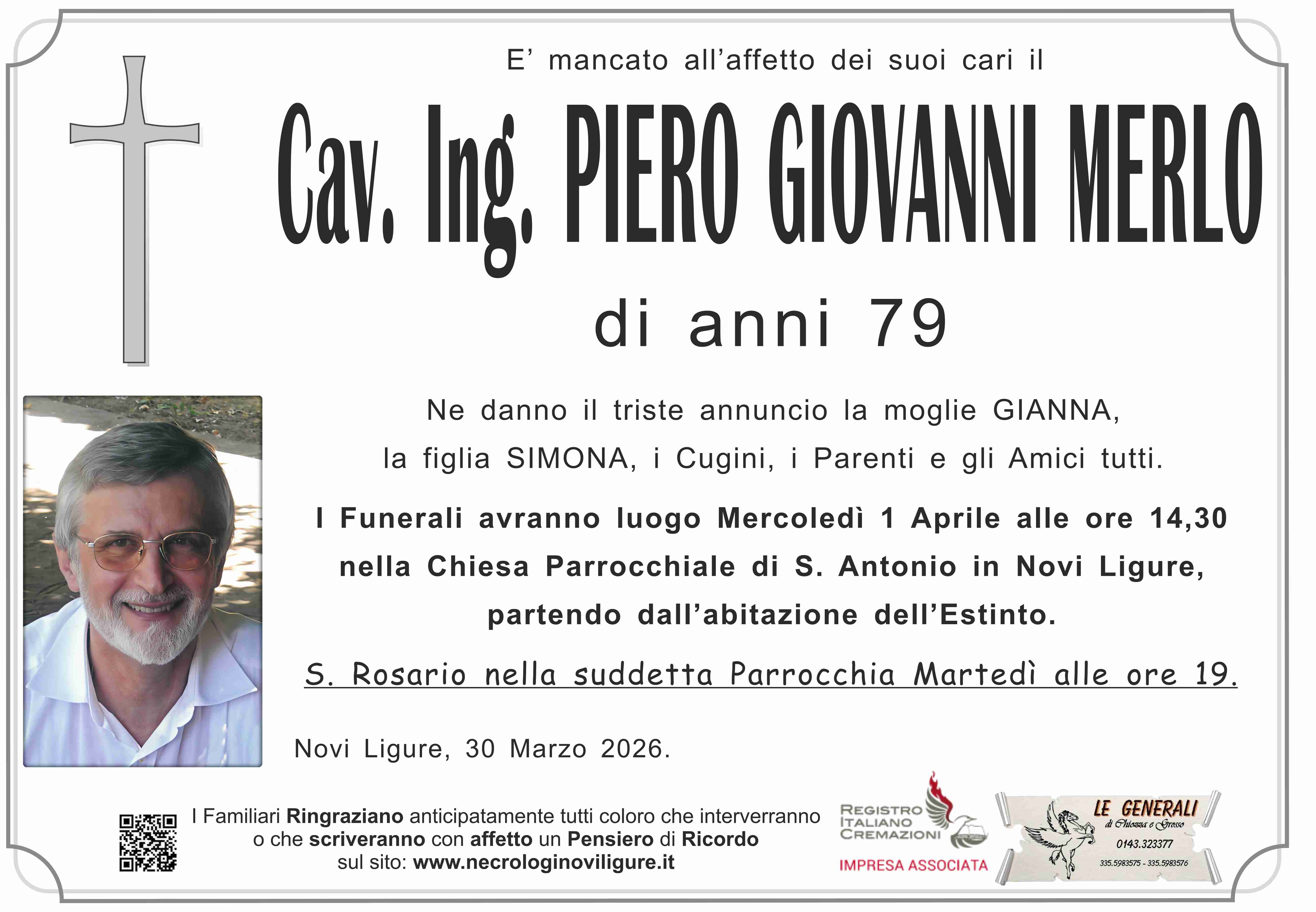 I familiari ringraziano anticipatamente tutti coloro che parteciperanno alla cerimonia funebre