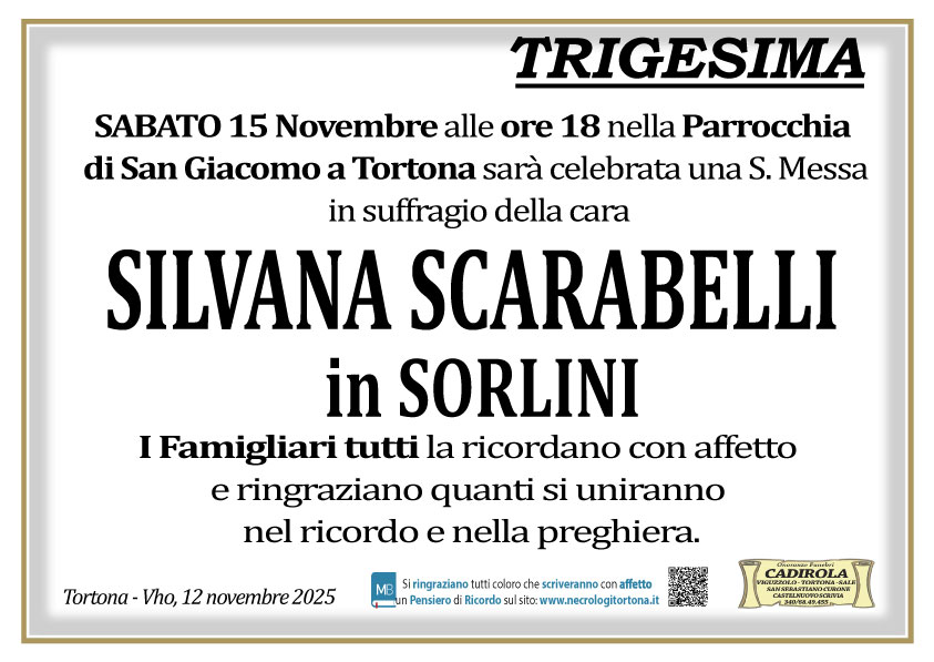 Sentite condoglianze alle famiglie Scarabelli e Sorlini per la perdita della loro cara Silvana. Il Signore le doni il riposo Eterno.