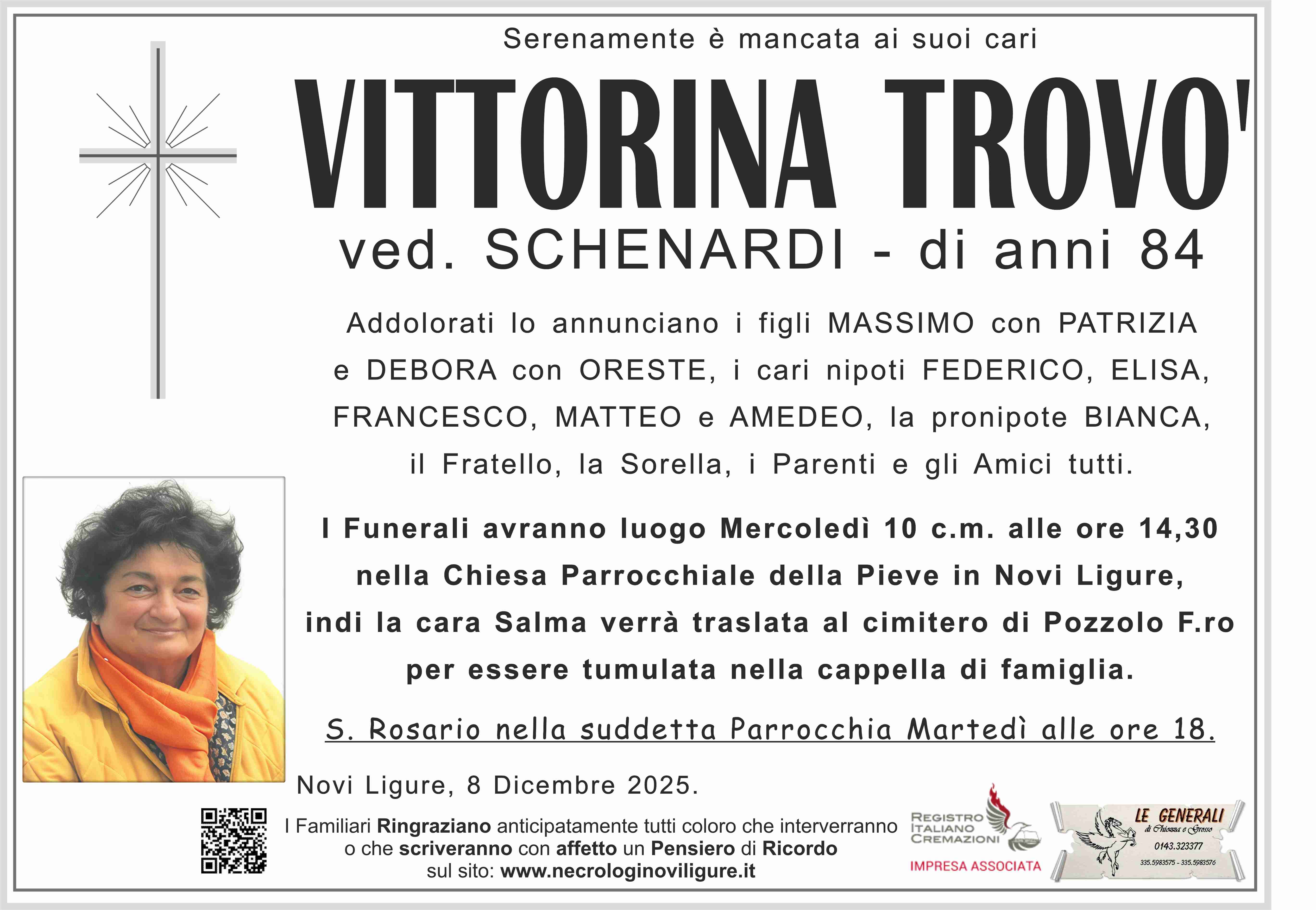I familiari ringraziano anticipatamente tutti coloro che parteciperanno alla cerimonia funebre