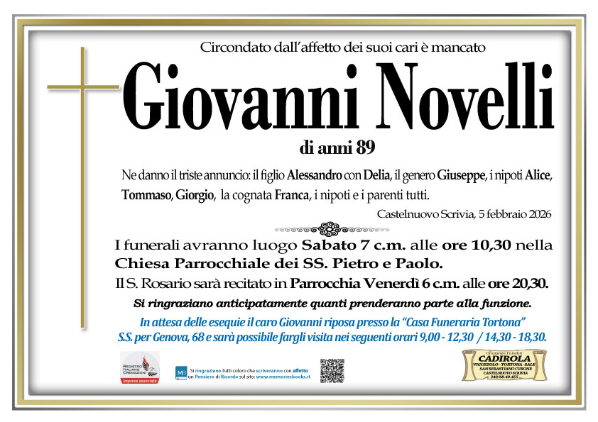 Voglio ricordare Giovanni persona di compagnia empatica e scherzosa R.I.P. vicino a Silvia e Maria. Sentite condoglianze ai familiari. Cugino Angelo e familiari.