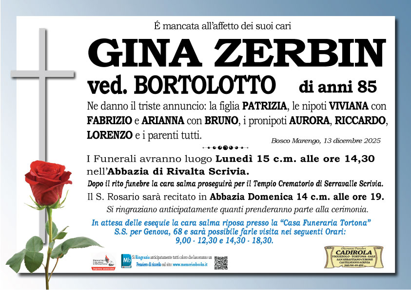 Clicca il pulsante qui sotto per visualizzare sulla mappa il luogo dove riposa GINA ZERBIN BORTOLOTTO.