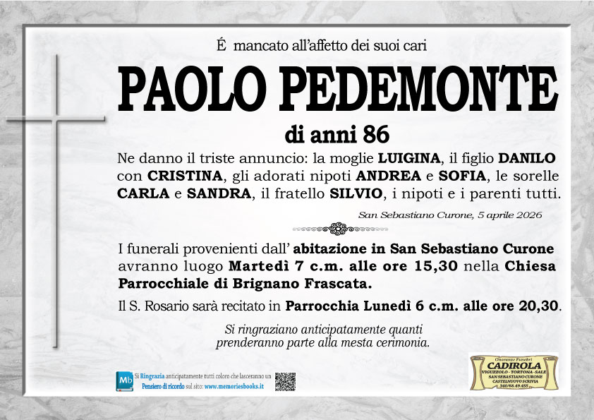 I familiari ringraziano anticipatamente tutti coloro che parteciperanno alla cerimonia funebre