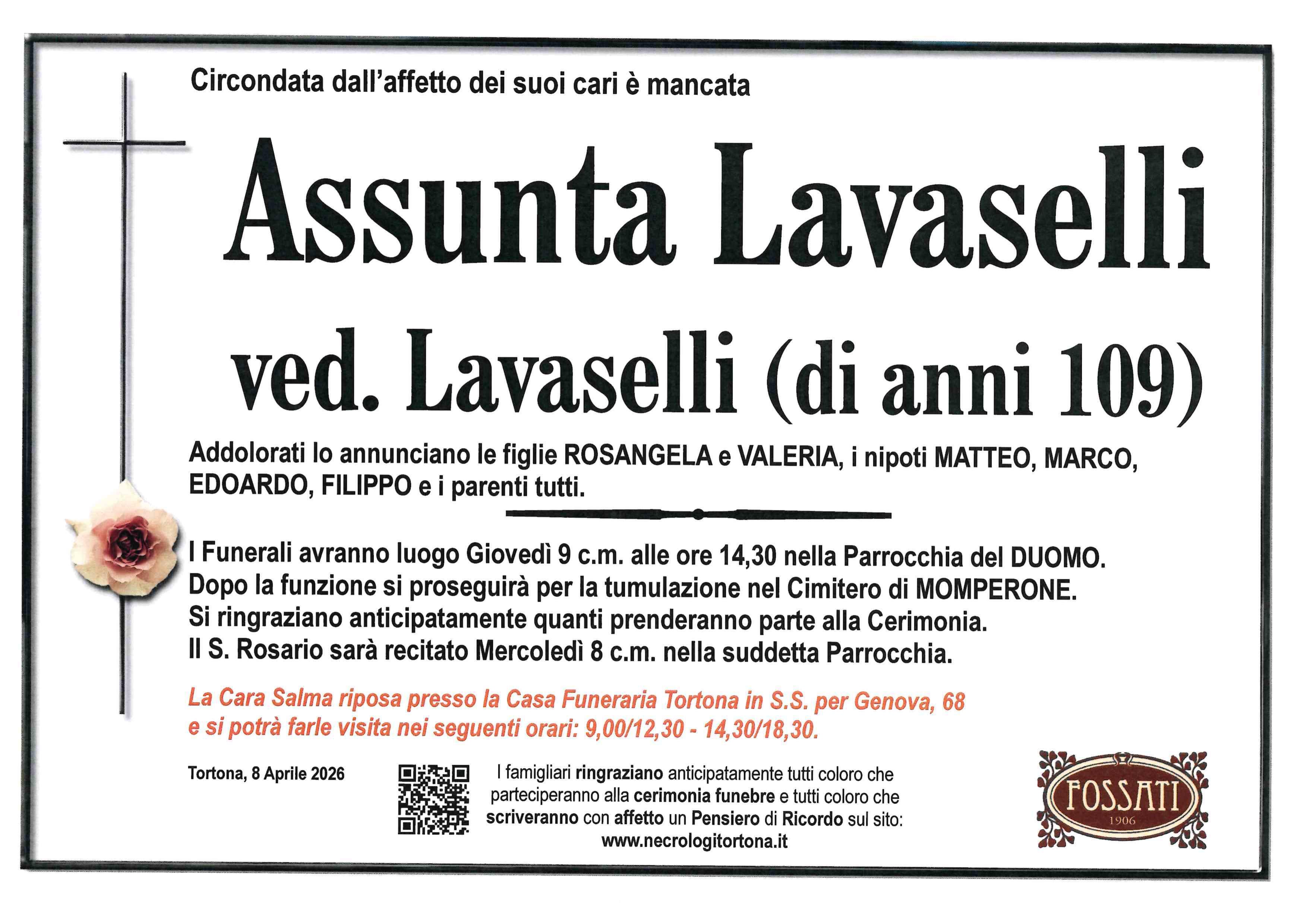 I familiari ringraziano anticipatamente tutti coloro che parteciperanno alla cerimonia funebre