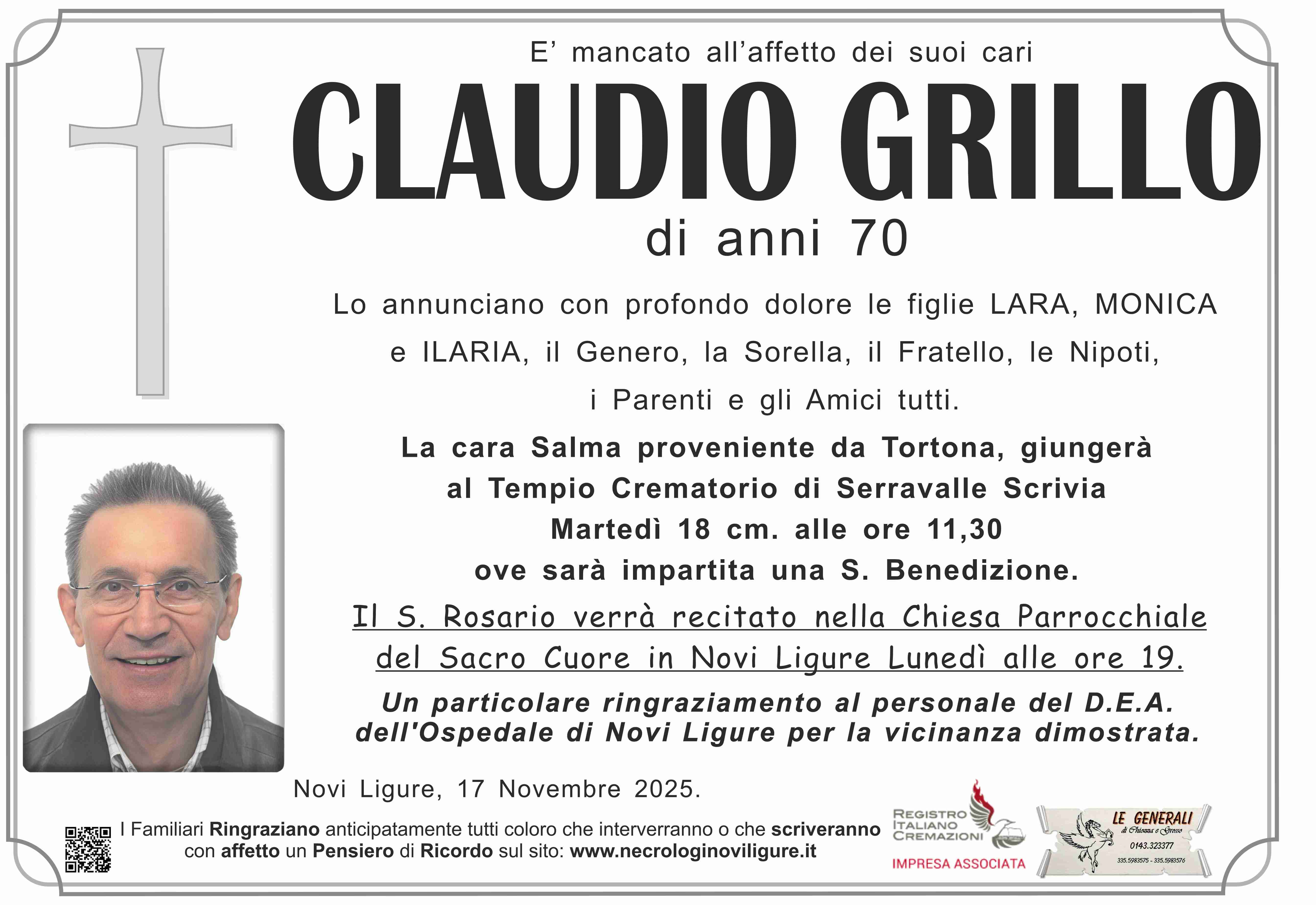 I familiari ringraziano anticipatamente tutti coloro che parteciperanno alla cerimonia funebre