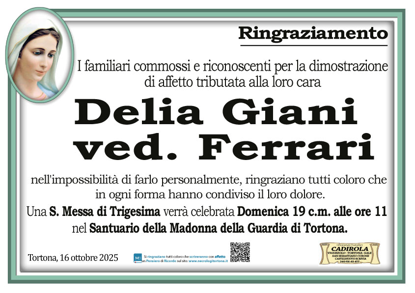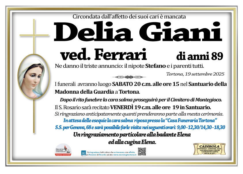 Cara Delia, in questo triste momento, ricordo di te una bella signora, sempre elegante e gentile con tutti. Rammento che ti brillavano gli occhi quando parlavi dei tuoi nipoti. Li amavi tanto, li adoravi con tutto il tuo cuore. Una preghiera e un abbraccio a Stefano e a te cara Delia, ovunque tu sia in questo momento.