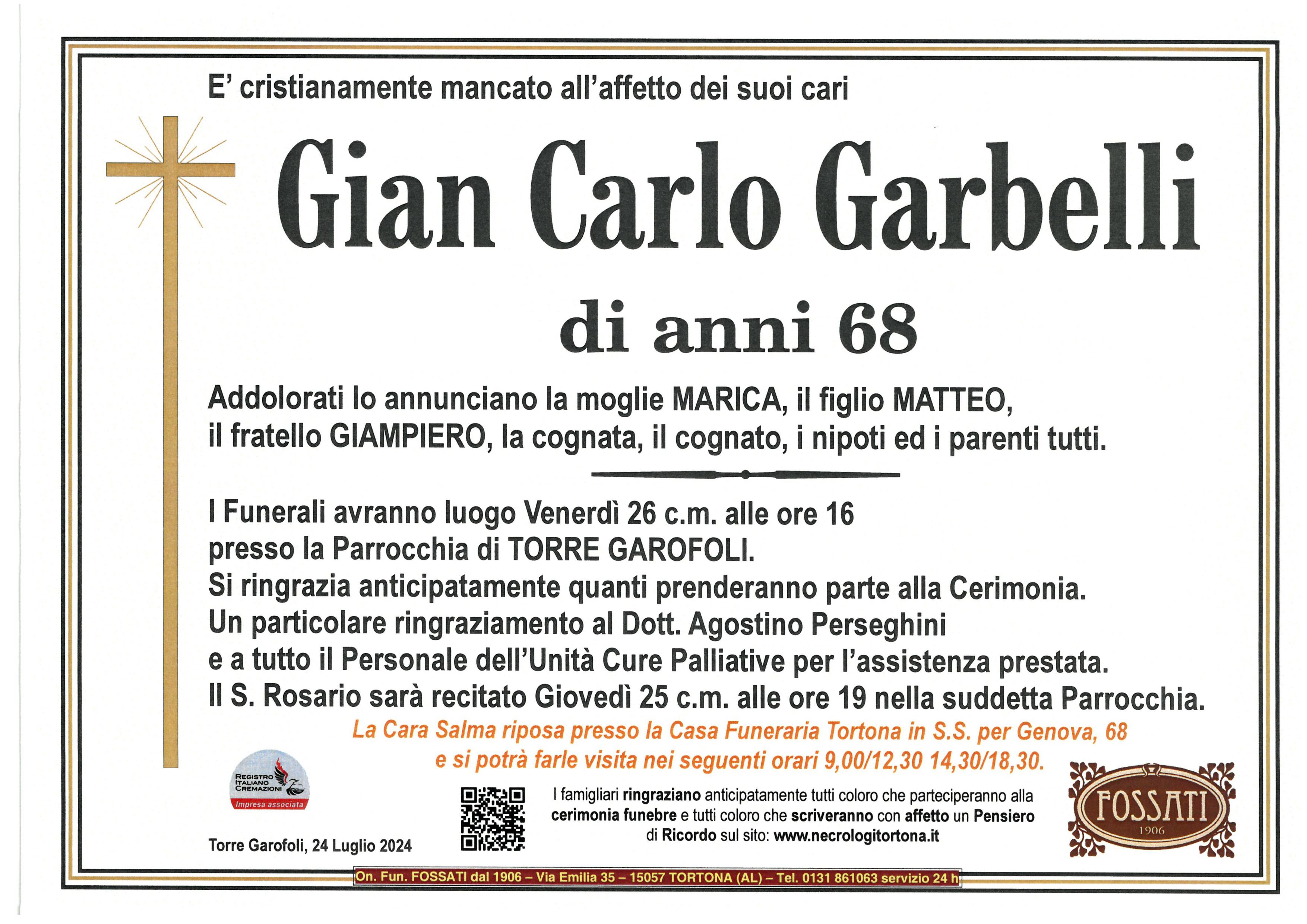 Vicini in questo momento di dolore, porgiamo sentite condoglianze. Famiglia Garbelli Vincenzo