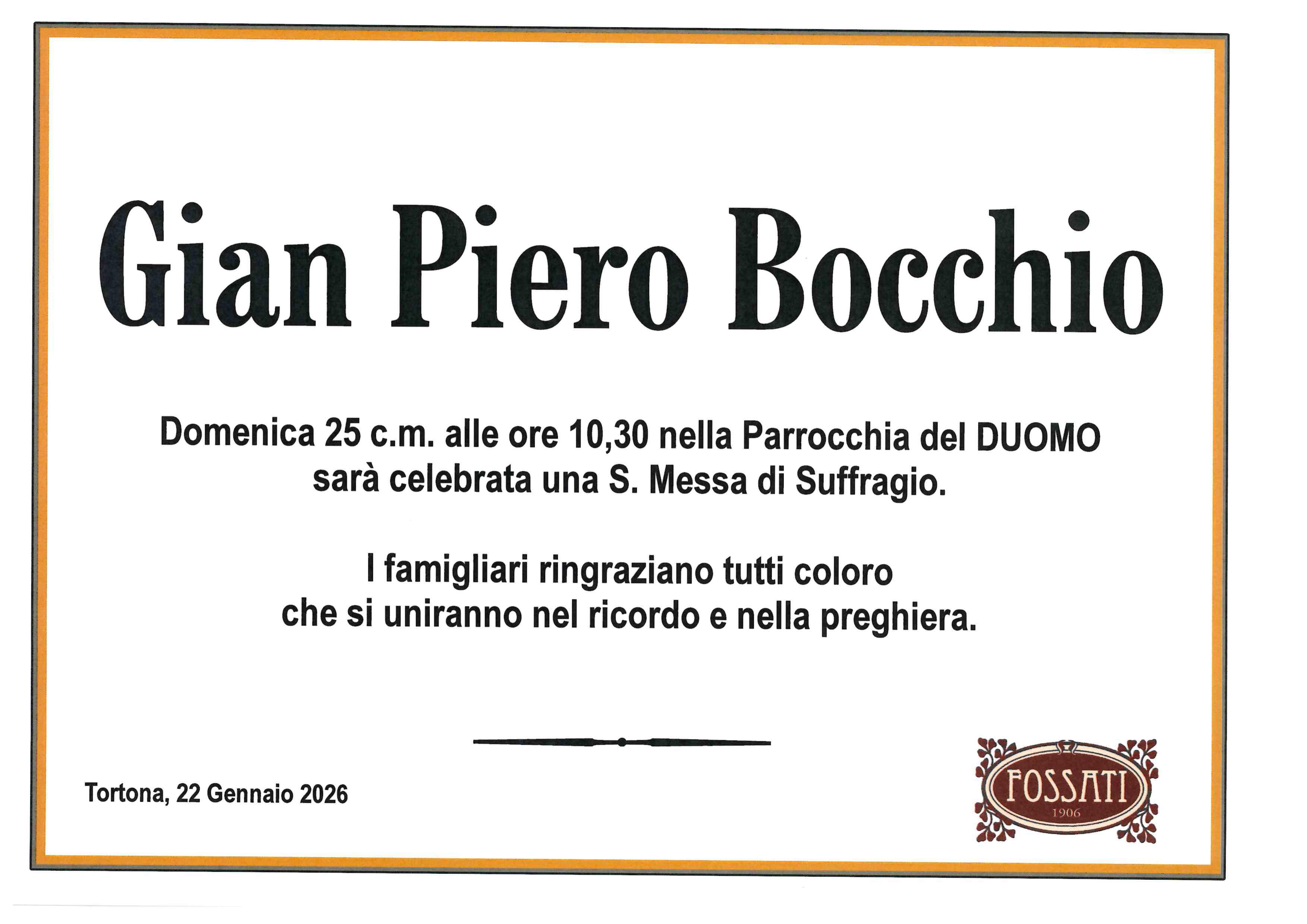 I familiari ringraziano anticipatamente tutti coloro che parteciperanno alla cerimonia funebre