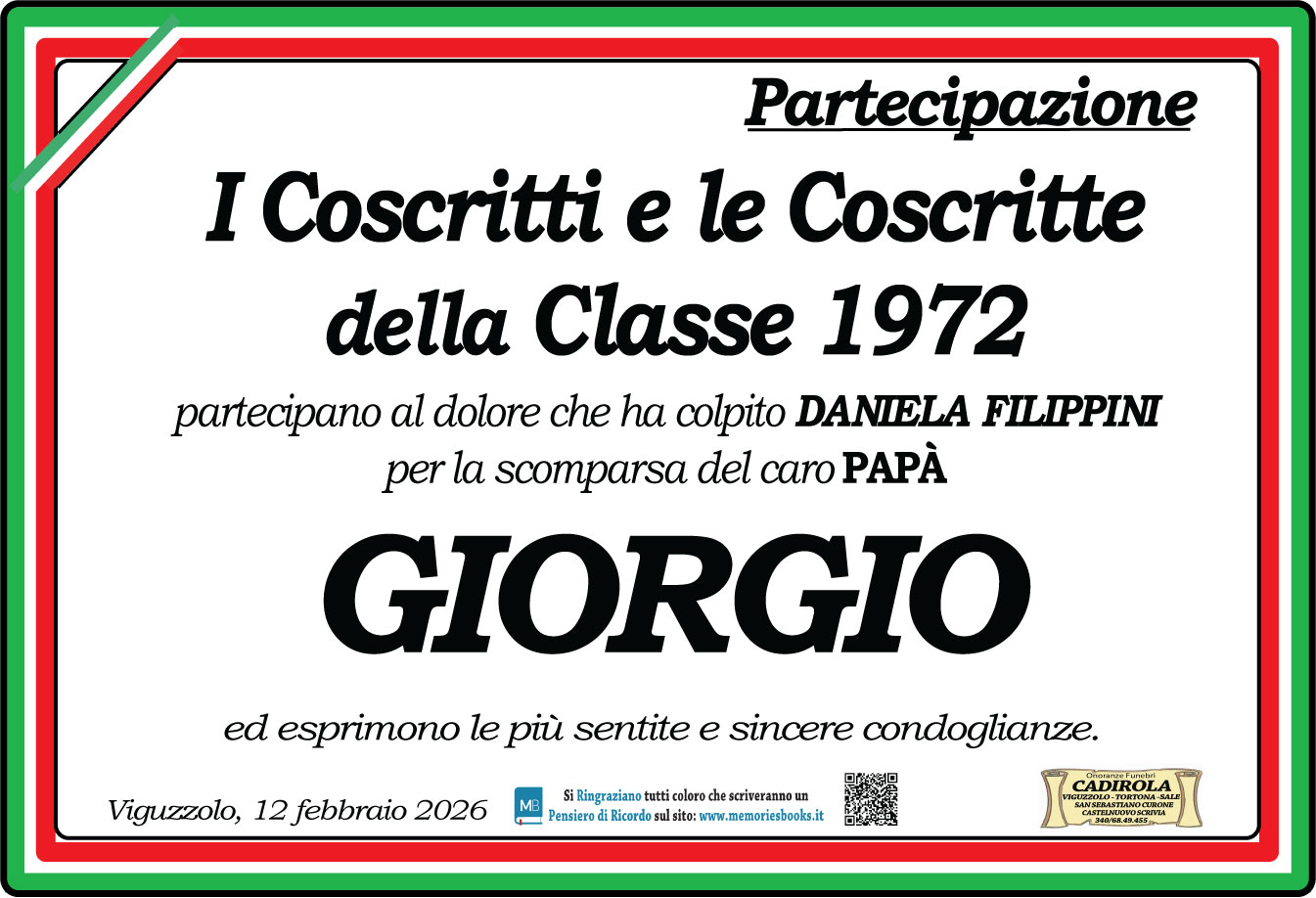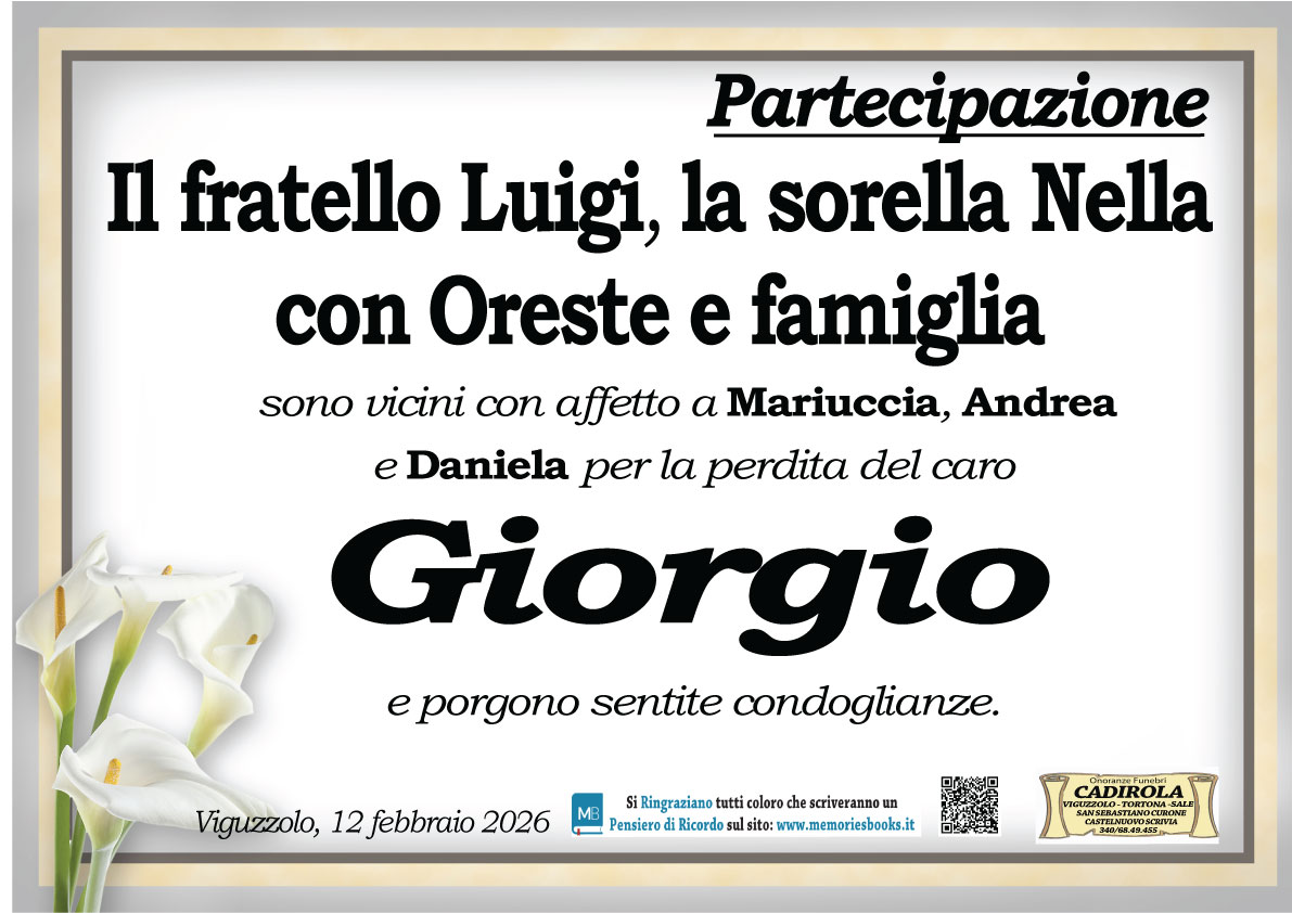 Vicini a tutti i familiari con la preghiera in ricordo del caro Giorgio. Sentite condoglianze.