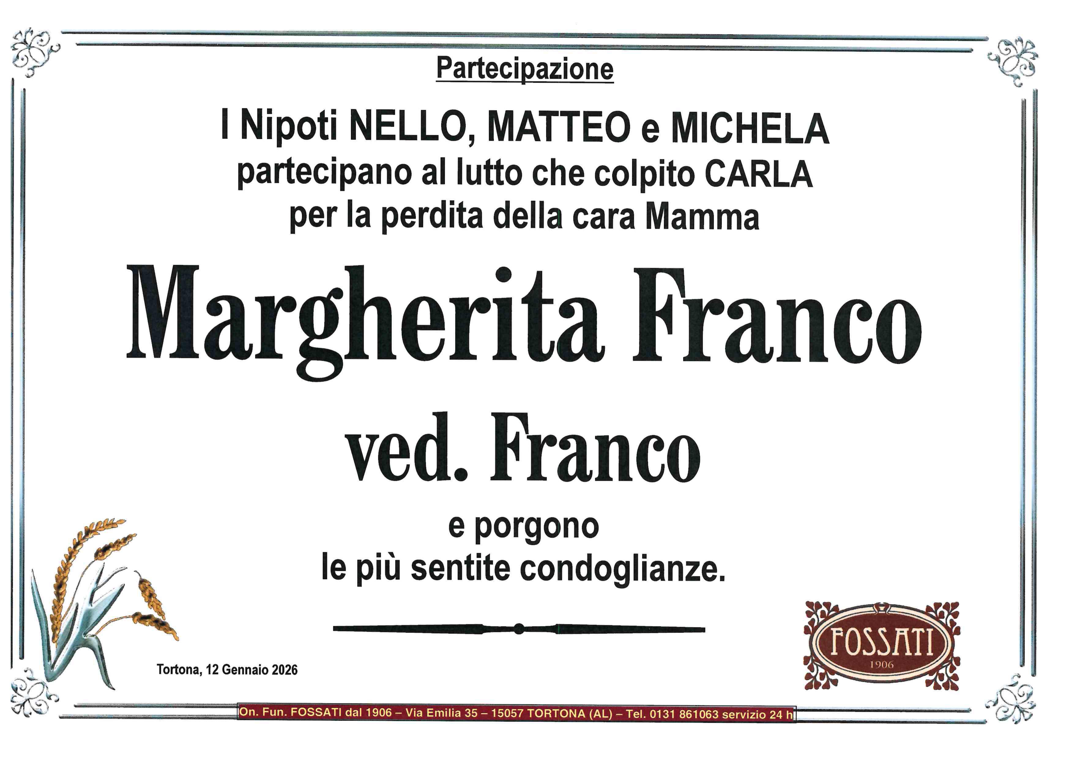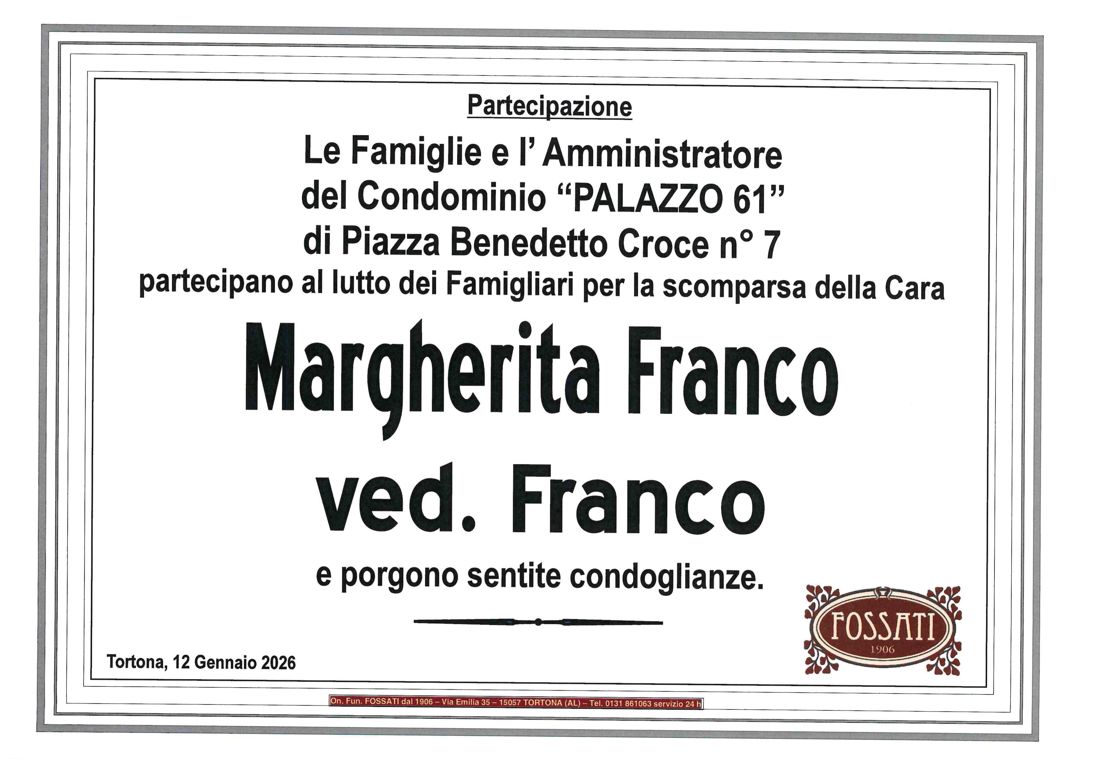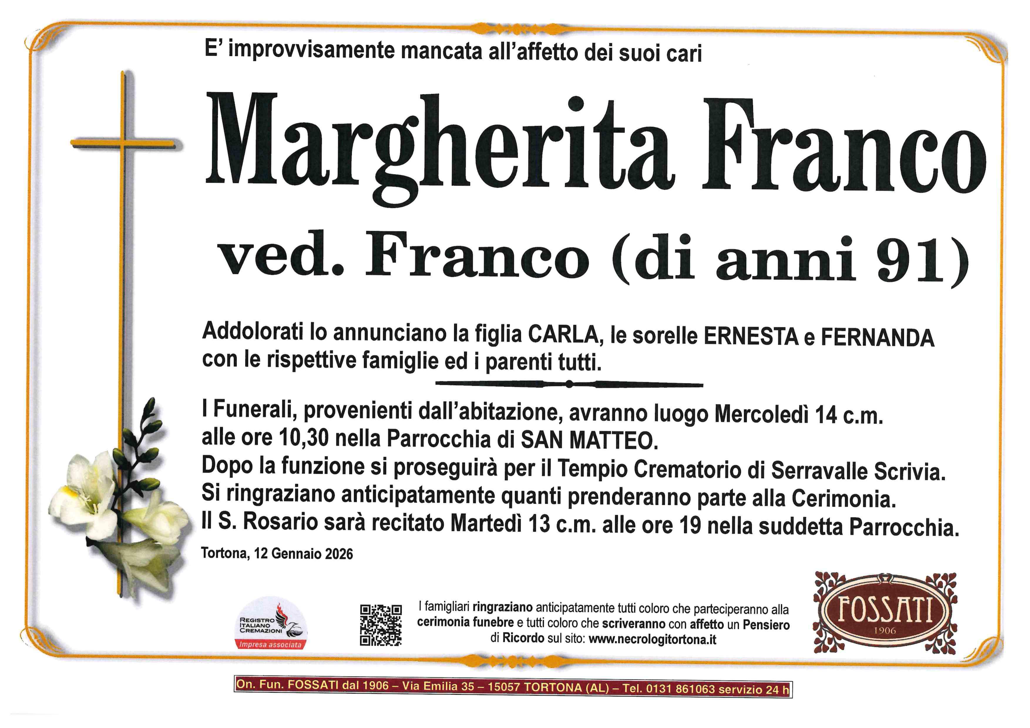 I familiari ringraziano anticipatamente tutti coloro che parteciperanno alla cerimonia funebre