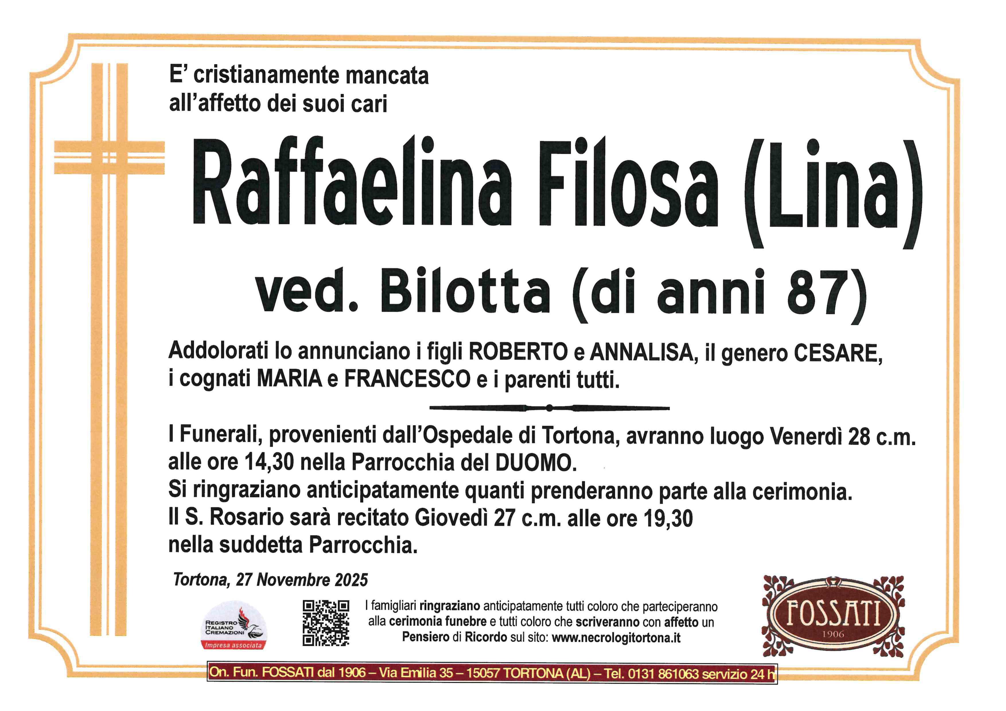 I familiari ringraziano anticipatamente tutti coloro che parteciperanno alla cerimonia funebre