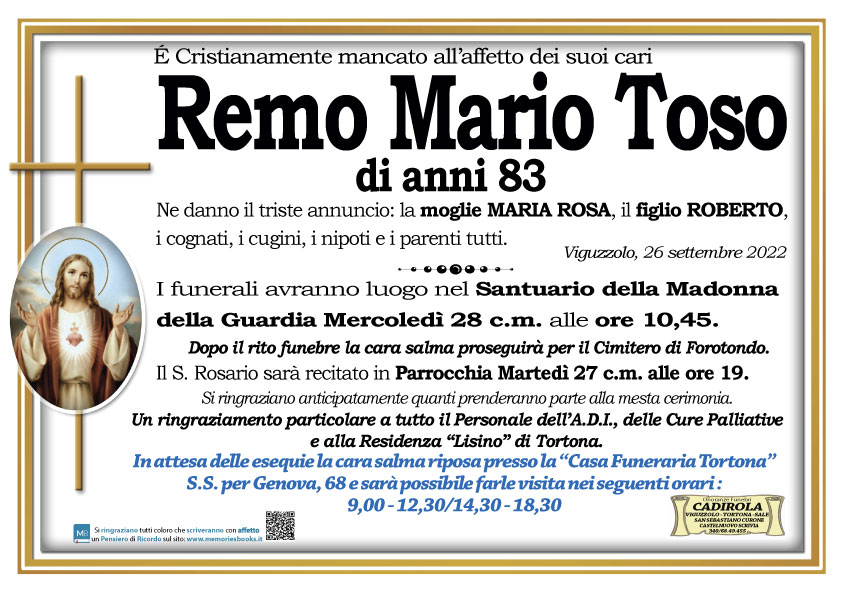Ciao Remo; te ne sei andato improvvisamente ed in punta di piedi. Che la terra ti sia lieve! Un forte abbraccio alla cara Maria Rosa ed al caro Roberto! Sentite Condoglianze! Vincenzo e Antonella