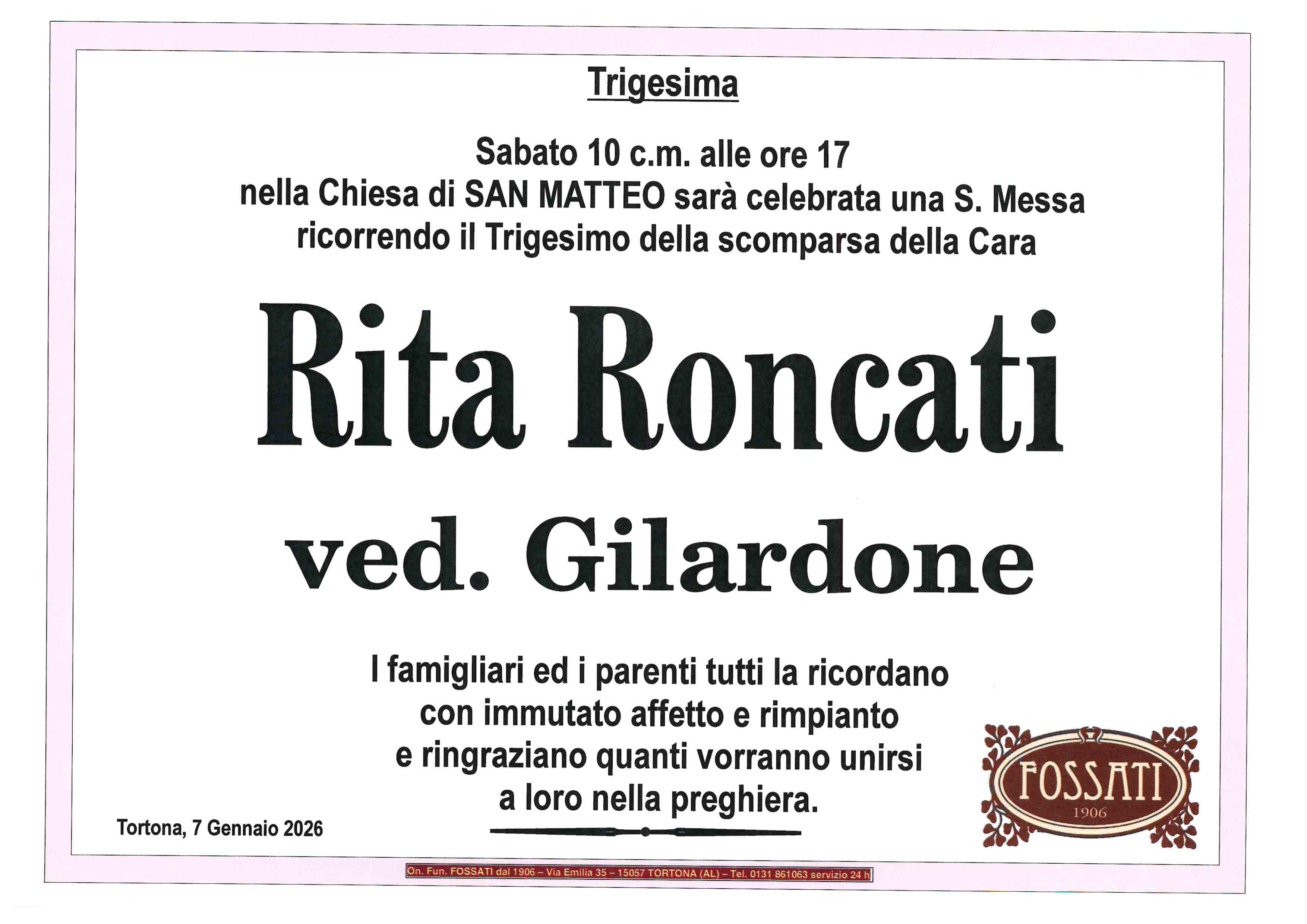I familiari ringraziano anticipatamente tutti coloro che parteciperanno alla cerimonia funebre